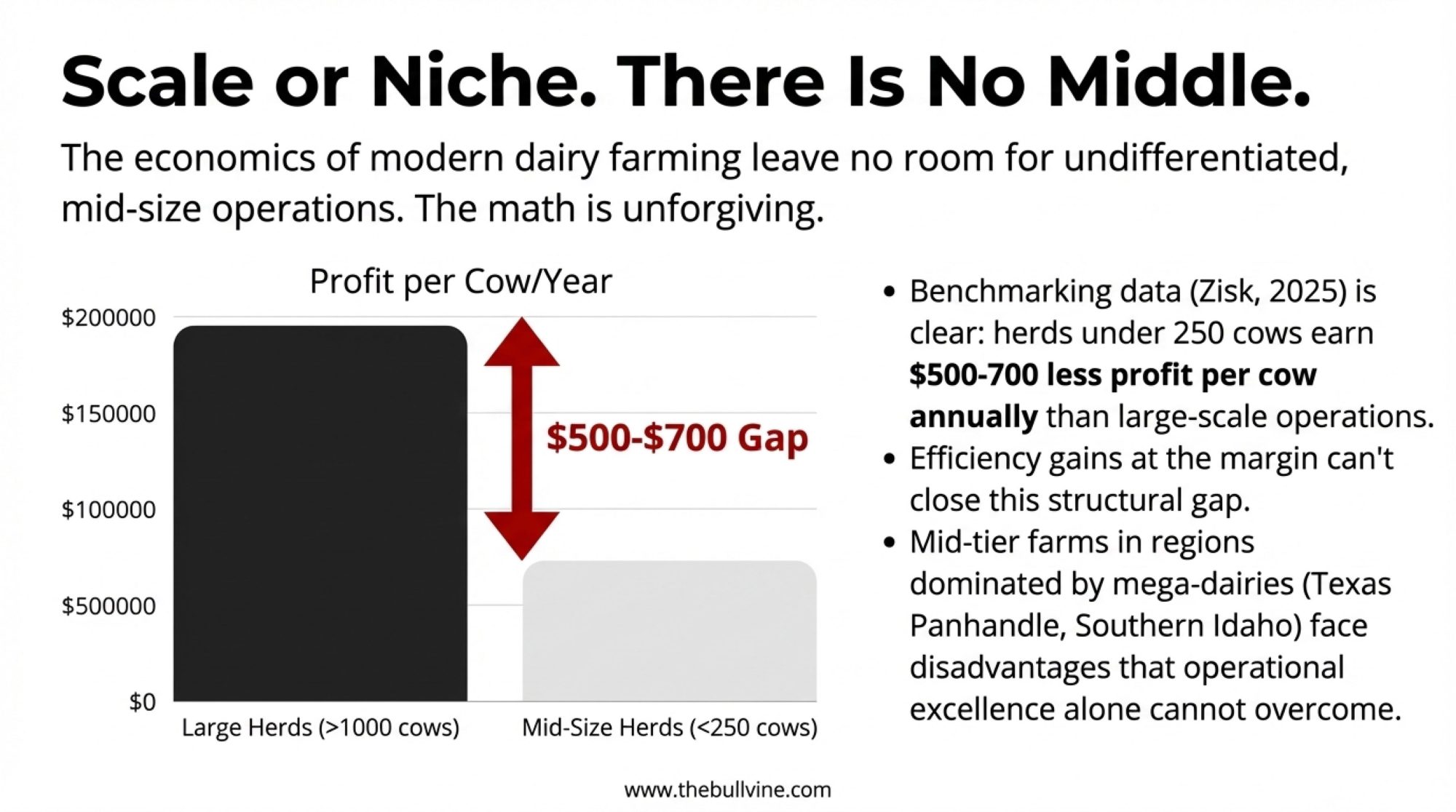 If the consolidation data makes the 300–700 cow operation look like an endangered species, it’s because we are looking at the industry through a single lens: commodity efficiency.