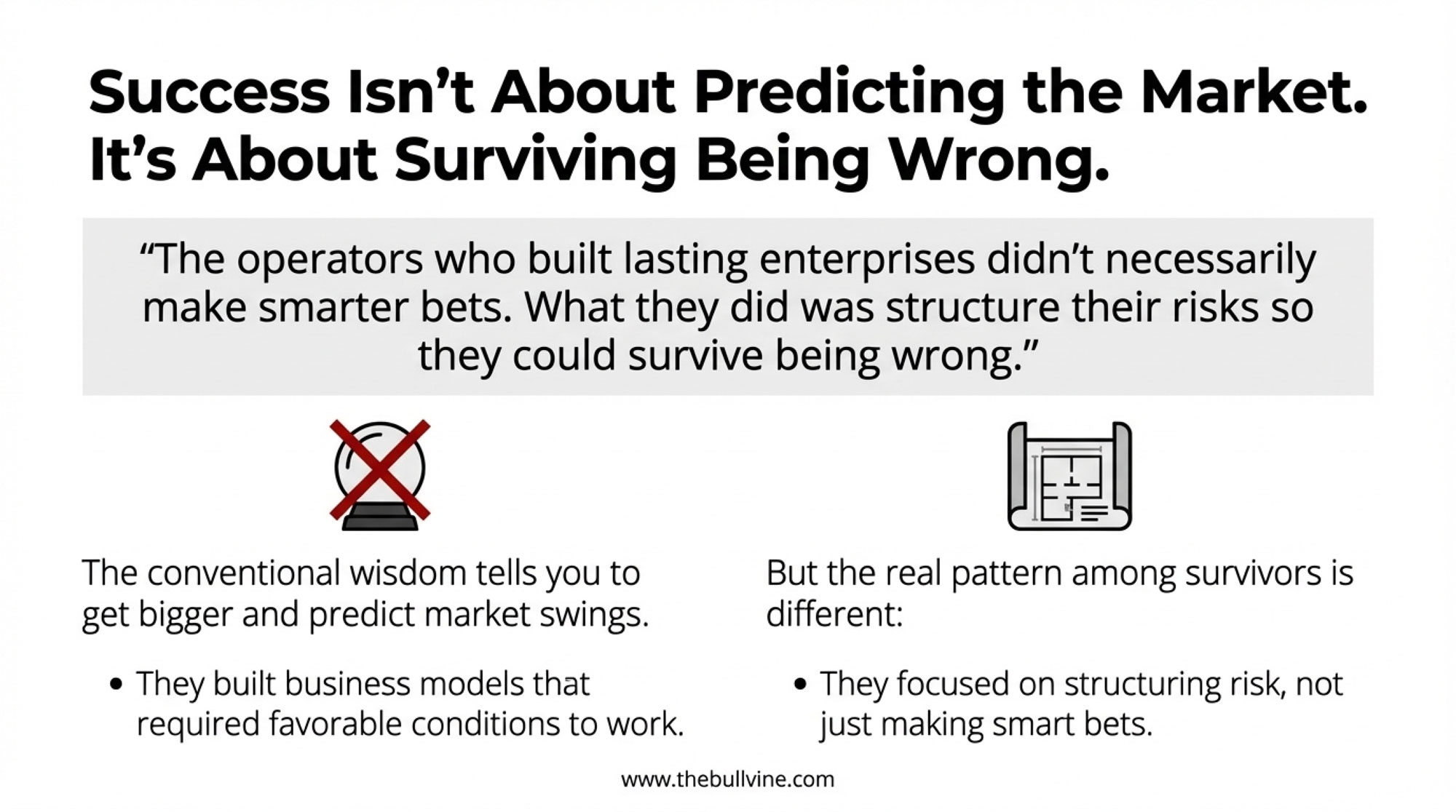 “The operators who built lasting enterprises didn’t necessarily make smarter bets. They structured their risks so they could survive being wrong.”