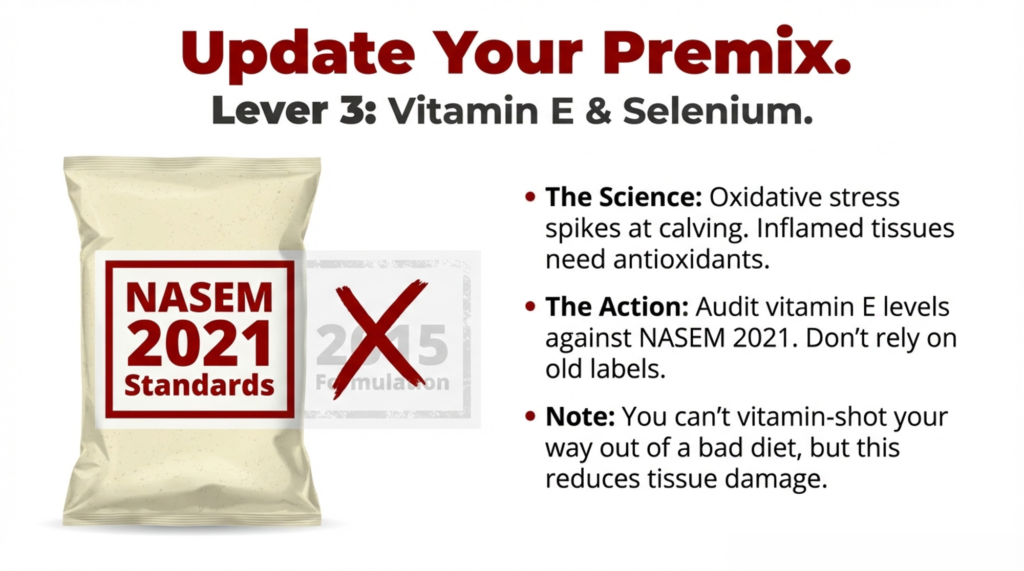 But don’t let inertia make the choice for you. Run the numbers for your operation. Talk to your nutritionist. Look at your treatment records from last year.