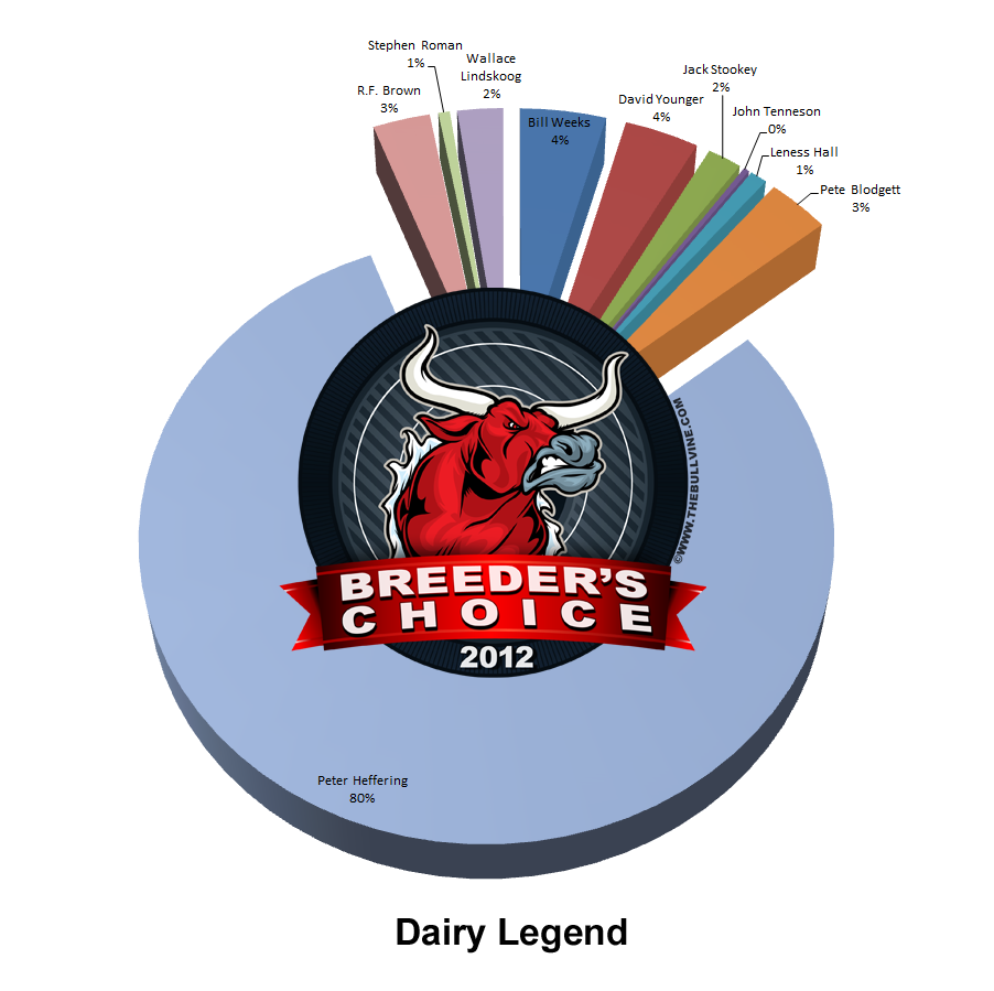 This was a category that was never in doubt, not in disrespect to the others in the class, but rather in respect to the outstanding contribution made by Peter Heffering who earned 80% of the popular vote. (Read more: Hanover Hill Holsteins: Peter Heffering 1931-2012)