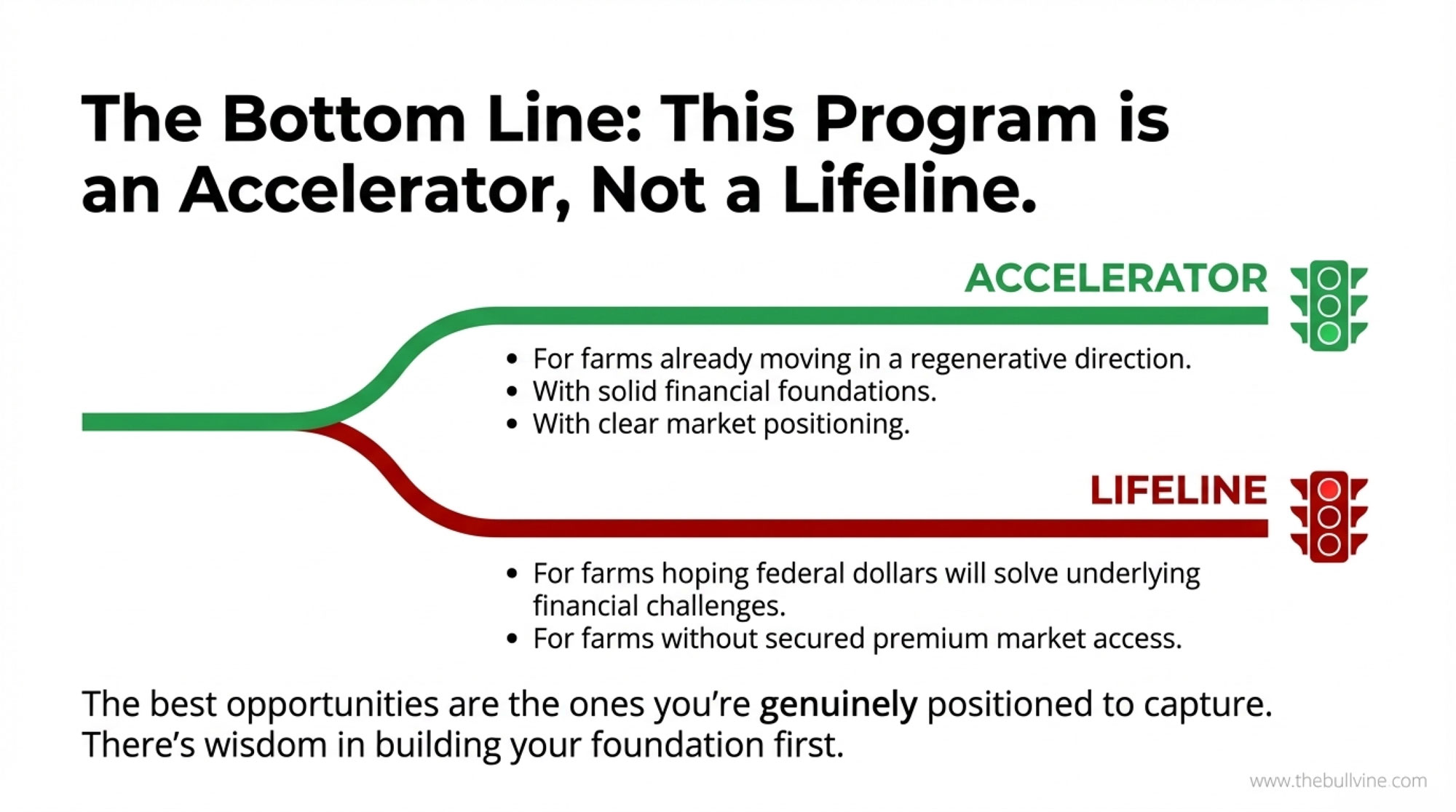 For operations that hope federal dollars will address underlying financial challenges or for operations without clear premium market access, the program may not change the fundamental economics. And the transition period—that stretch where soil improvement runs ahead of cash flow recovery—requires adequate reserves to navigate successfully.