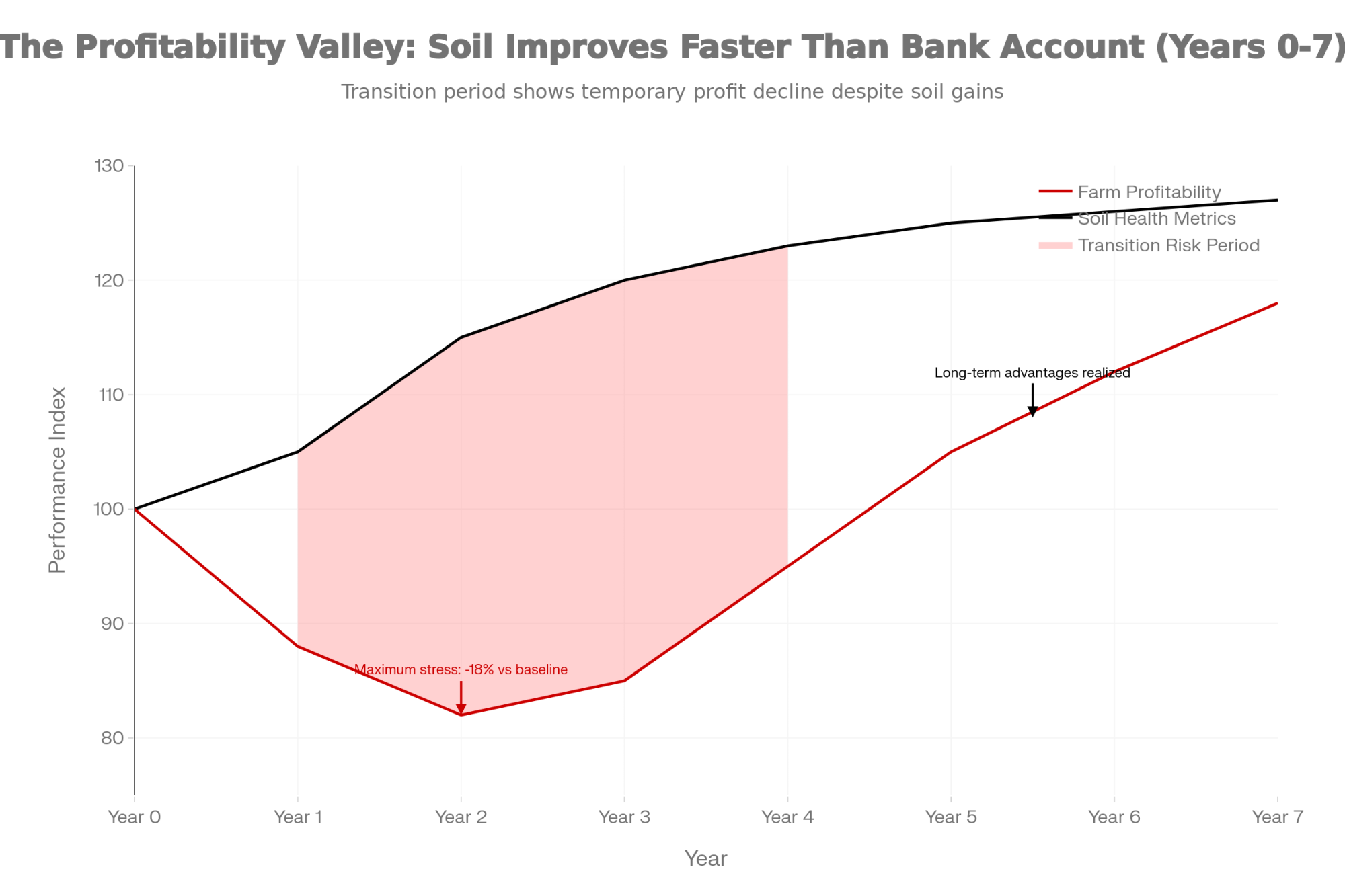 | Year | Soil Health Index | Farm Profitability Index | Performance Gap |