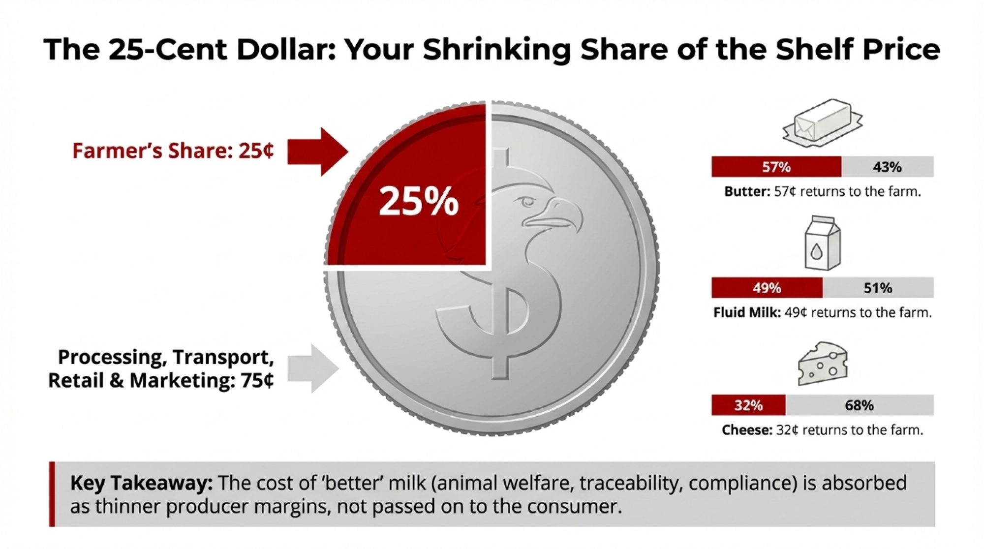 - Co-op structure determines whether you ever see that margin: cash patronage splits range from 15–70%; equity can take years or decades to turn. If whey isn’t reported or tied to patronage, the value often stays parked on the co-op balance sheet.