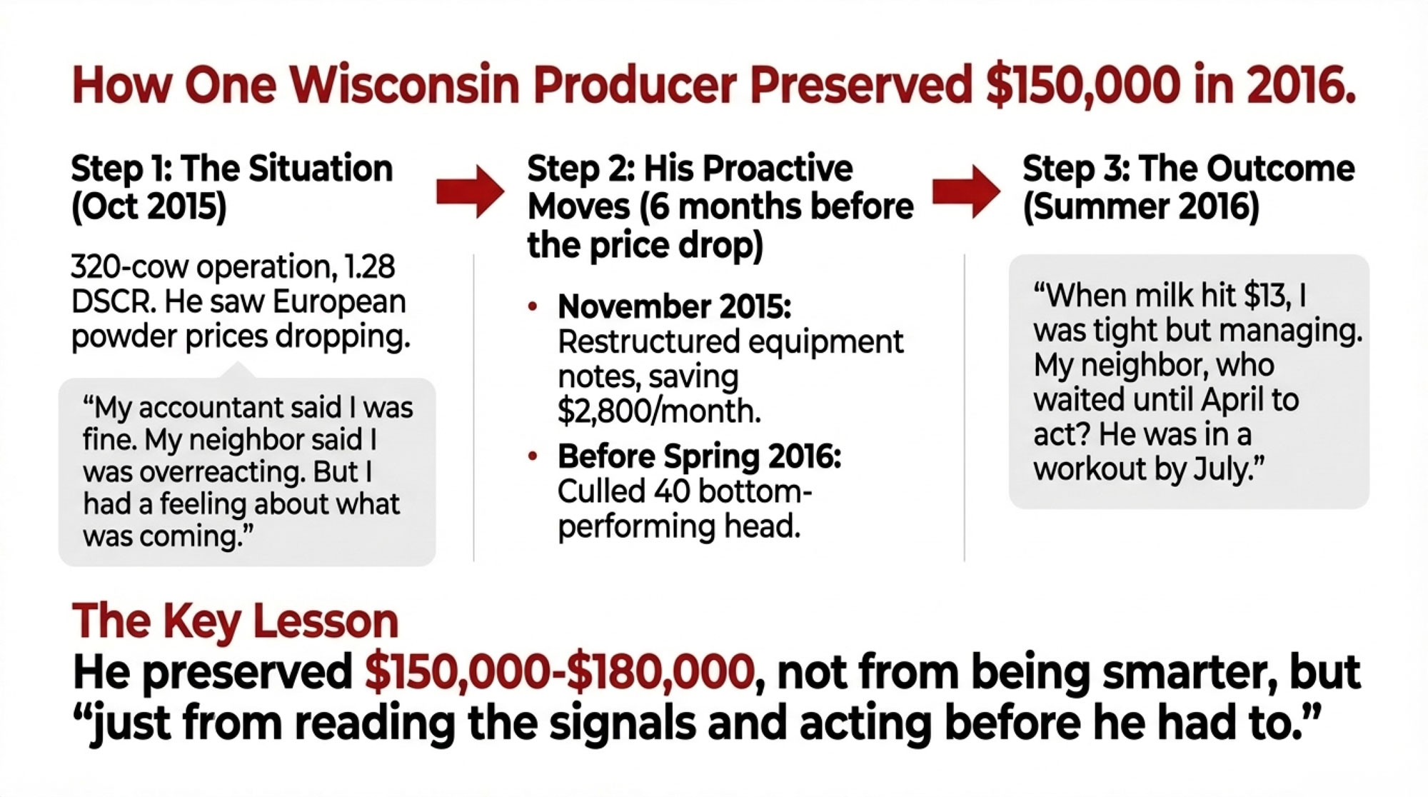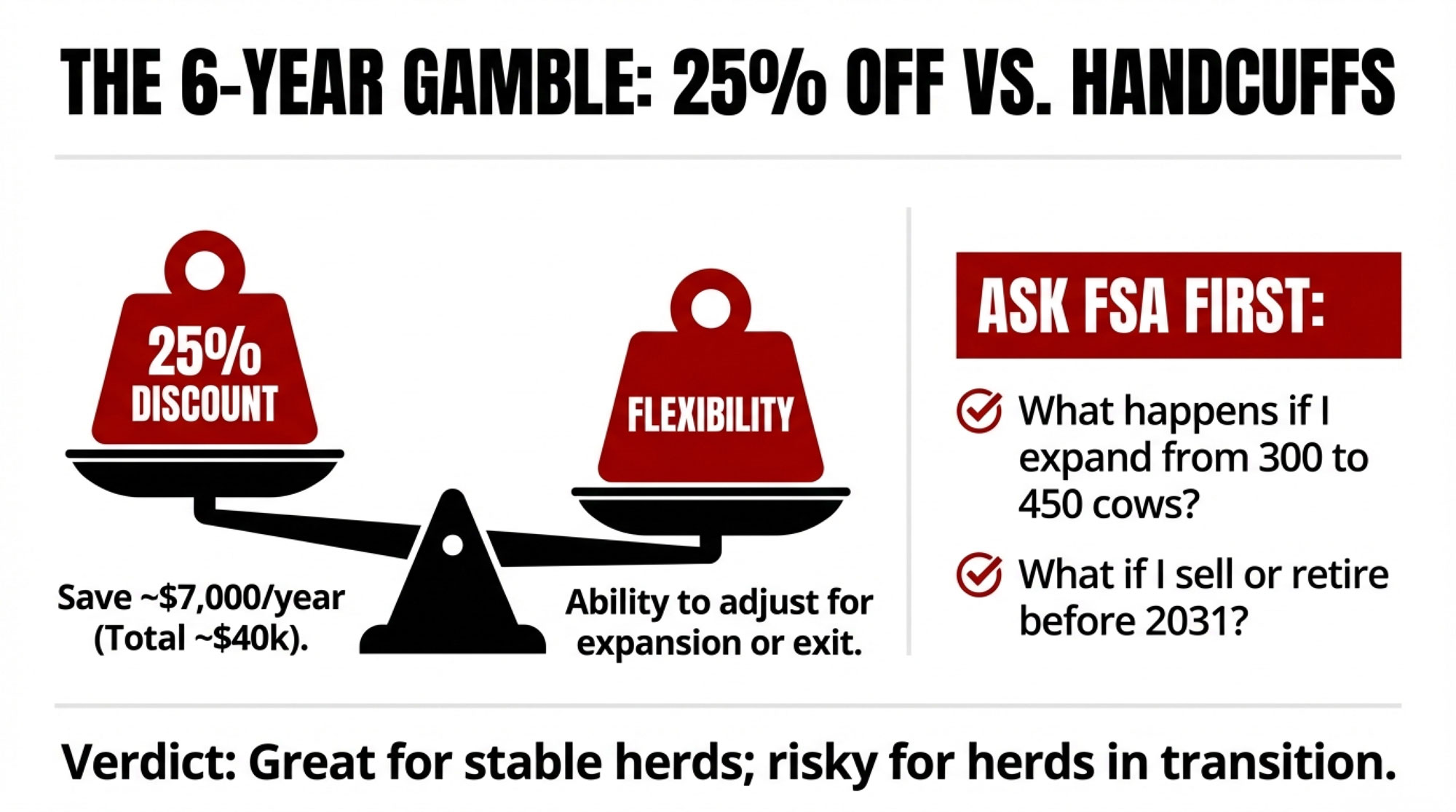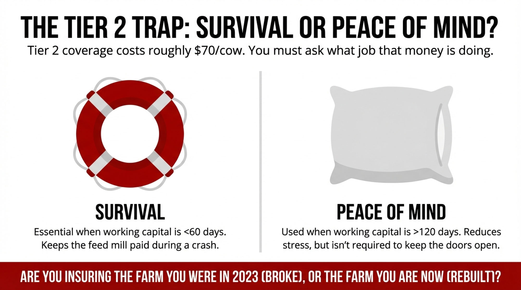 | 250-Cow Herd | 67,500 cwt/yr | $0 additional cash | +$10,125 annual cash | +$40.50/cow | Worth deferring a major repair vs. doing it now; offsets half a veterinary rotation |
