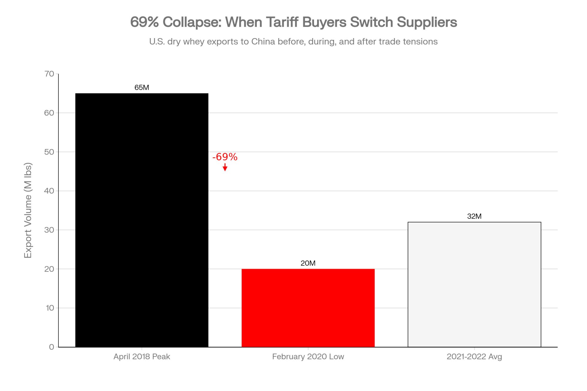 | Commodity Dry Whey (Animal Feed) | $0.38–$0.42/lb | Limited | −12 to −18¢/lb vs. human food |
