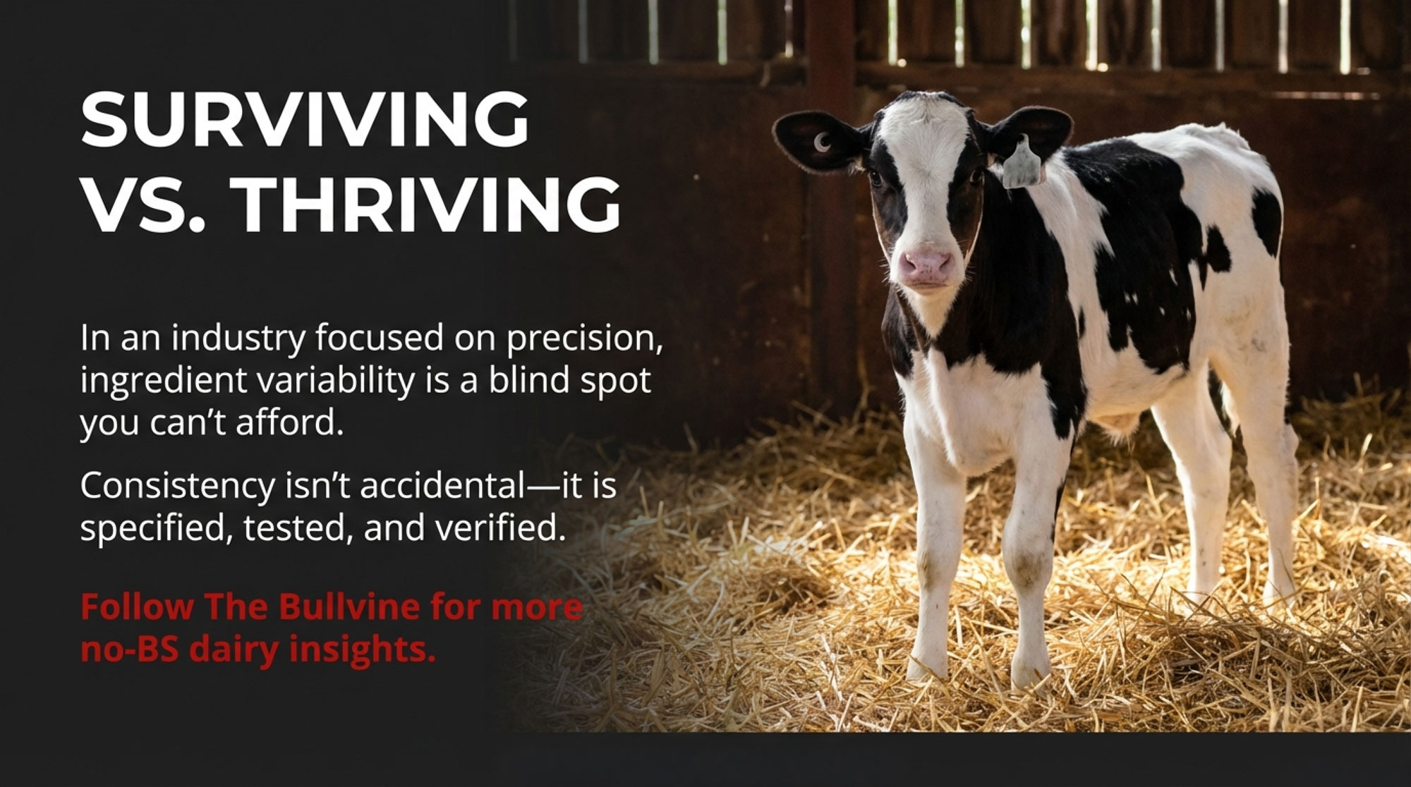 When you consider extra days on feed, management complexity, and potential milk yield differences, it becomes easier to see how relatively small per-calf investments in ingredient consistency might deliver meaningful returns.