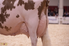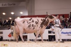 Boulet’s first Excellent cow was Pierstein Starbuck Lilas (EX-3E-3*) in 2001. He has since bred another 227 Excellent cows. Pierstein is the only herd in Canada to have developed three Excellent-97 Holsteins and the only herd to have had two animals classify Excellent-97 on the same day, achieving that with the earlier mentioned Thrulane James Rose, and Bruynland Storm Kendra (EX-97-3E-2*), another longtime show campaigner for Boulet. His third 97-point cow, the now 16 1/2-year-old Loyalyn Goldwyn June (EX-97-6E-5*), was a Royal class winner three times and named Holstein Canada “Cow of the Year” in 2019. Boulet has also developed an additional five Excellent-96 Holsteins.