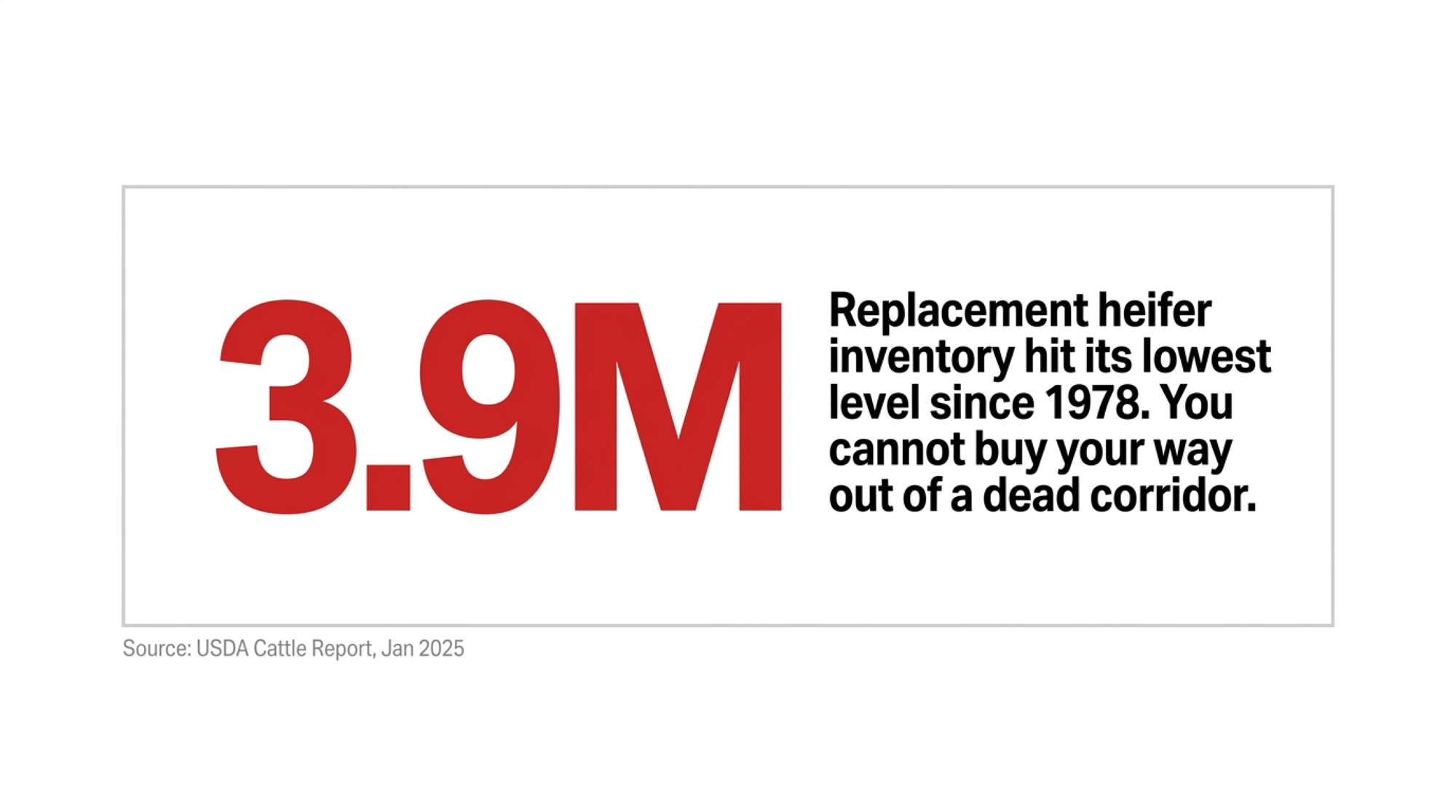 - If your 10-year expansion plan assumes available, affordable replacements, rebuild it. The January 2025 heifer inventory is the lowest since 1978, and the pipeline tightened before the rule did.