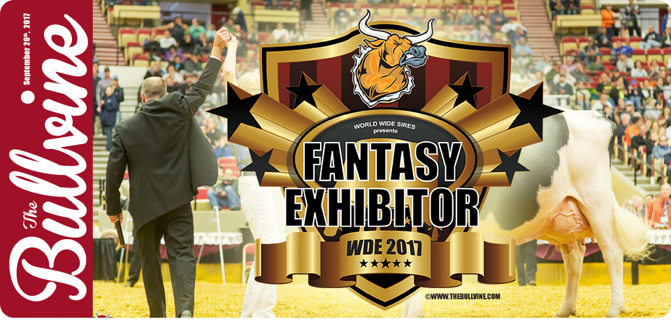 The winner of the 2017 World Dairy Expo Fantasy Exhibitor Contest is Scott Forsyth, with a team of CO VISTA DOORMAN 2417, TY D DEMPSEY LOVEMMY, LELLAVAN AVALANCHE FUGI, JACOBS HIGH OCTAINE LA LIANN, CAMPBELL-RUN GCHIP AMELIA, MILKSOURCE DOORMAN CHEX, CAMPHOLS DOORMAN ELISEE, UNIQUE DEMPSEY CHEERS, WEEKSDALE ABSOLUT VODKA, TREFLE CHASSEP DOORMAN, SKYCREST MINCIO PRICKLES, CO-VALE DEMPSY DINA 4270, JACOBS SID BEAUTY, ROSIERS BLEXY GOLDWYN earning him a total of 155 points, plus he submitted on the first day, so he received 52 bonus points. The ultimate team would have been MILKSOURCE GLDNDRM ASSET, CAMPBELL-RUN GCHIP AMELIA. CO-VALE DEMPSY DINA 4270, SMITH-OAK AVLNCH ROSETTE, RAN-CAN ALANZO CLICHE, ROSIERS BLEXY GOLDWYN, TK-PLAIN VIEW RIPLEY, PETITCLERC ATWOOD SPOUTNIK, TREFLE CHASSEP DOORMAN, ALEAH MILLEN NAUGHTY SURPRISE, BROWNTOWN MARIO MARLO, UNIQUE DEMPSEY CHEERS, SKYCREST MINCIO PRICKLES & ARETHUSA DARYL SIENNA that would have cost $1,469,000 and earned 252 points.