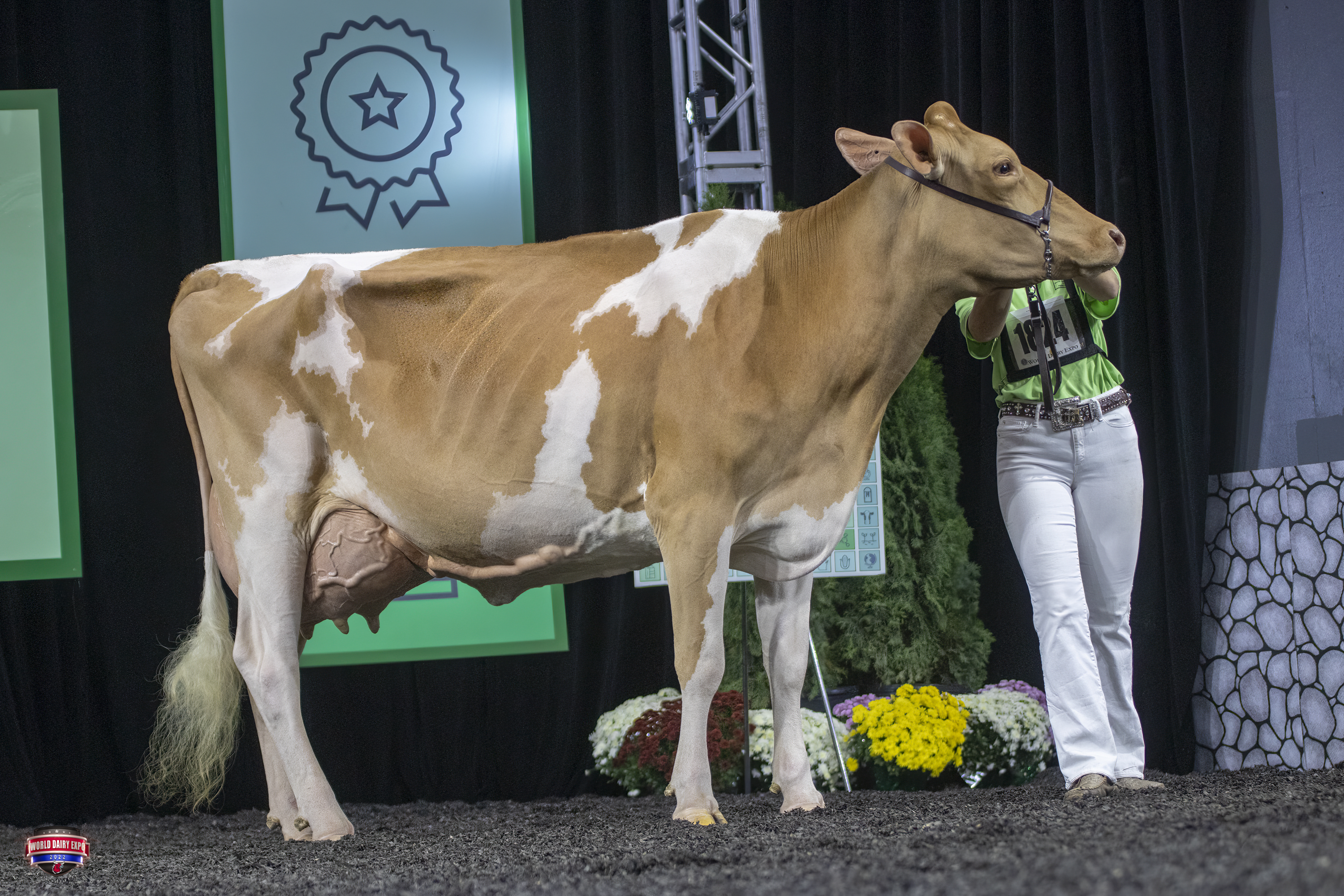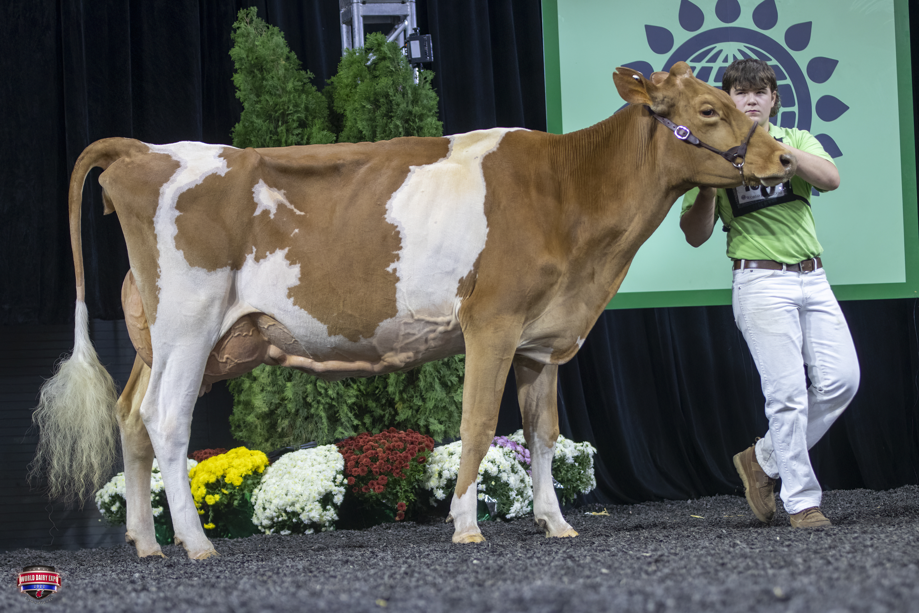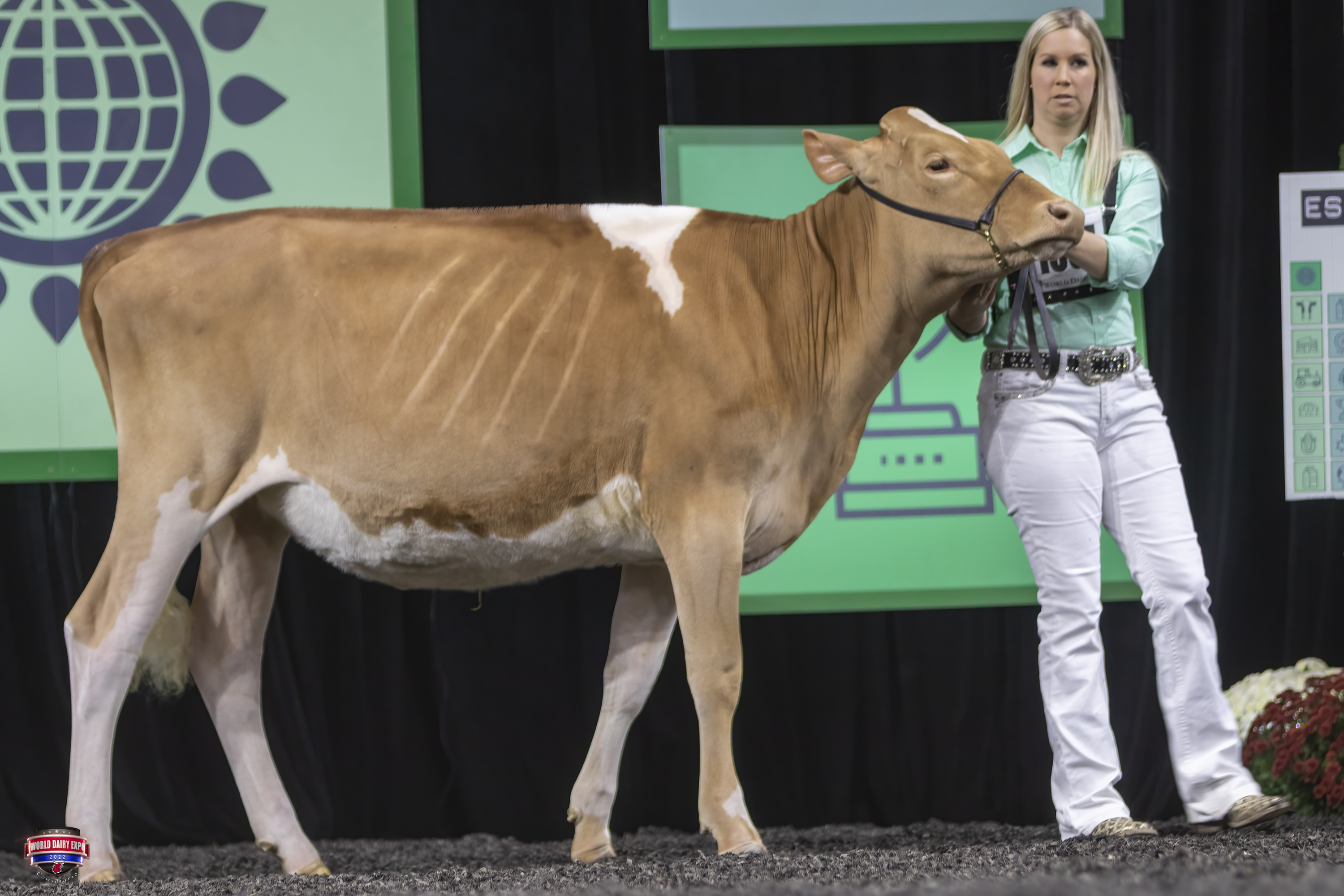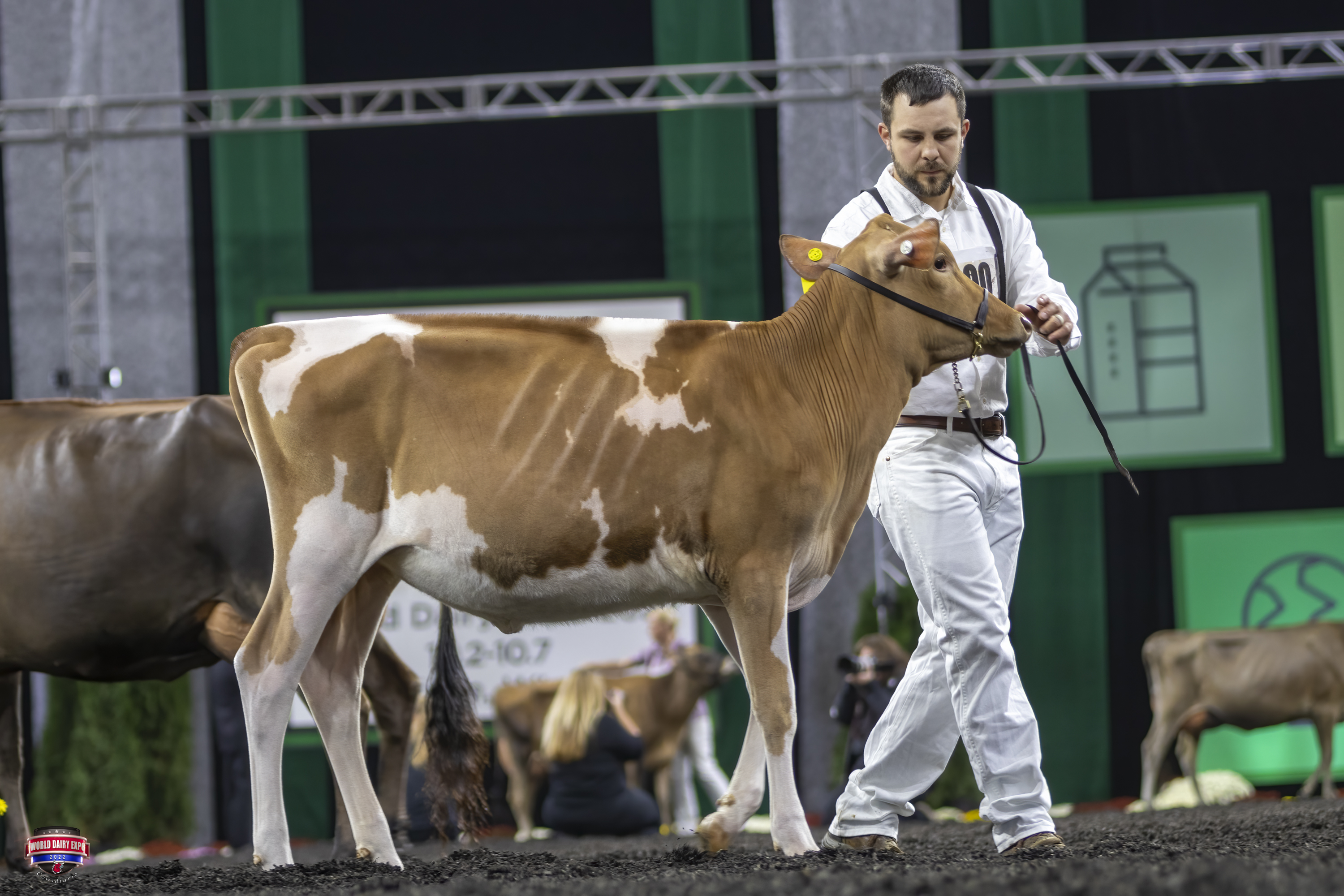 Spinghill Fame Judeau 1st place Spring Calf International Guernsey Show 2022 Springhill