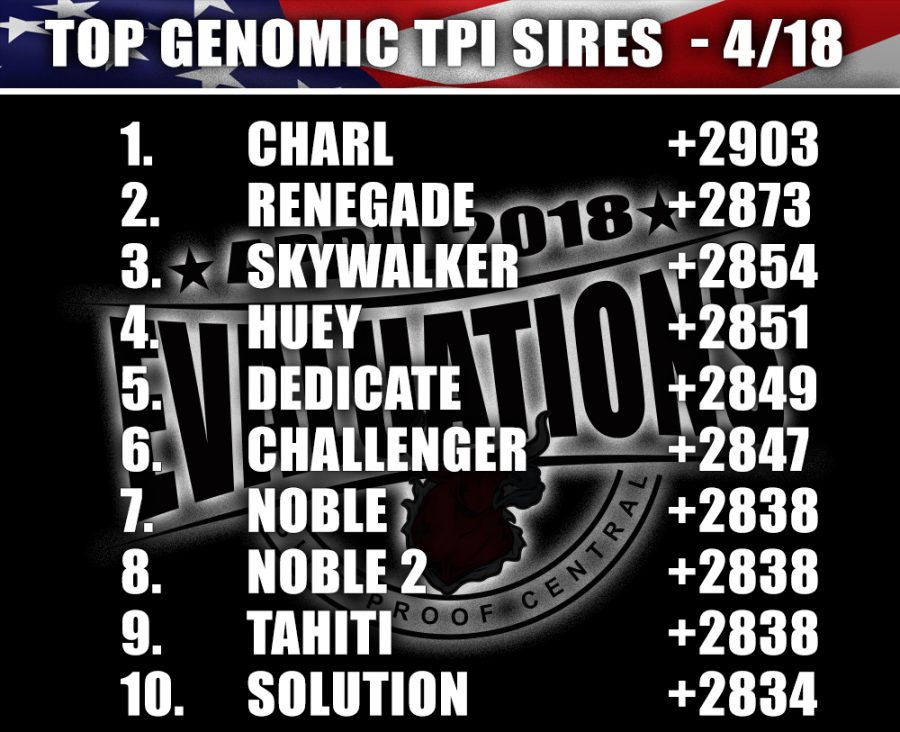 - Top 100 Genomic TPI Sires <1 year of age – April 2018