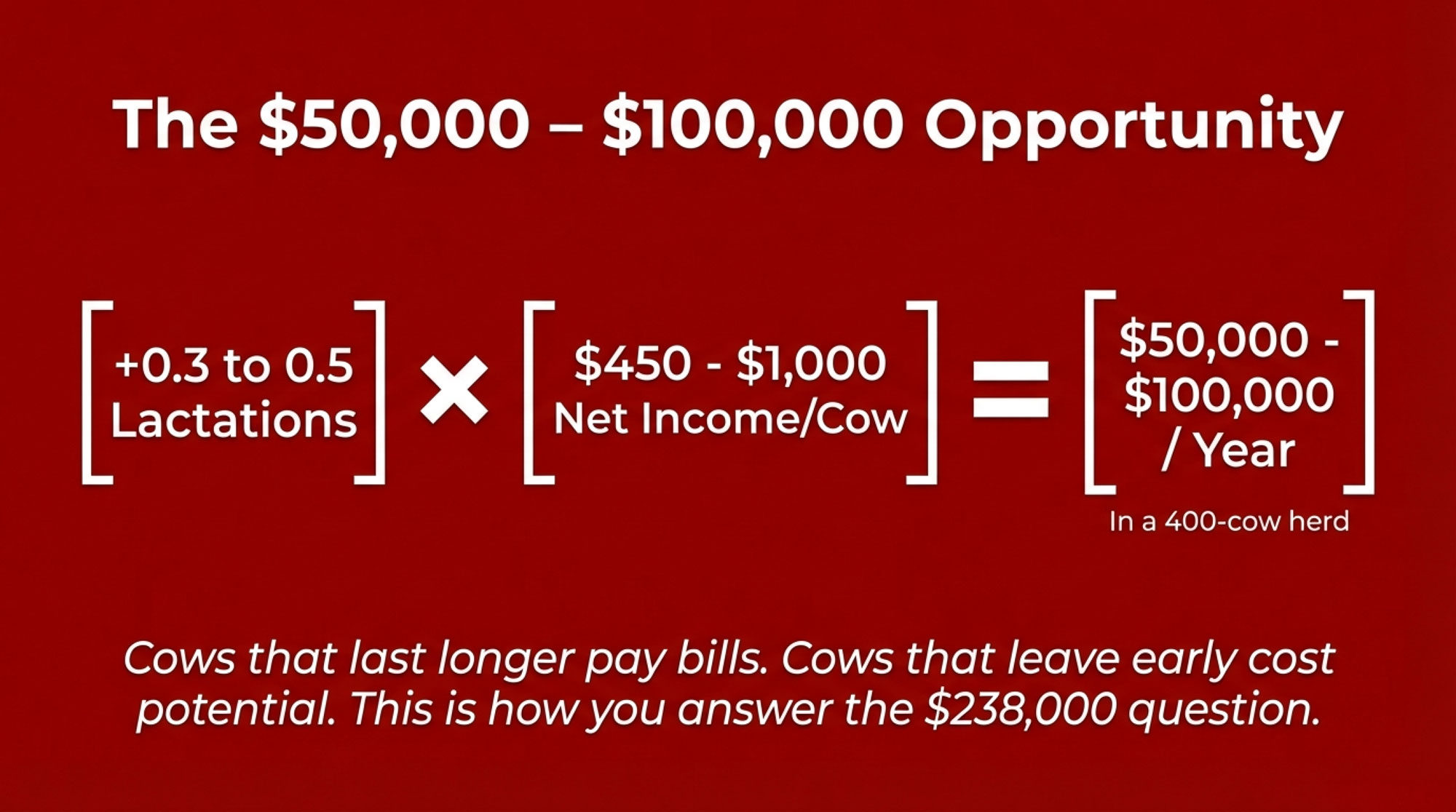 - The payoff is real: A 400-cow herd using these strategies can capture $50,000–$100,000+ per year in extra lifetime profit—that’s the $238,000 answer over 3–5 years.