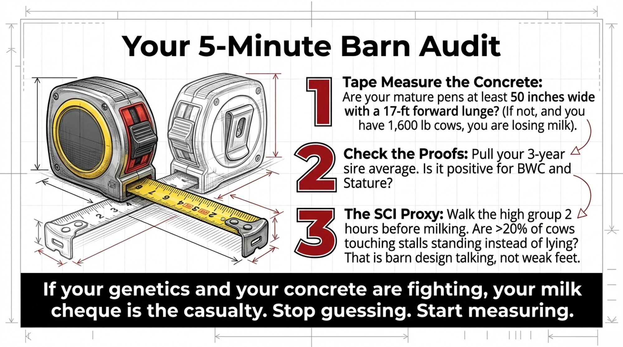 If you walked your barn this afternoon with a tape measure in one hand and your last proof run in the other, would they tell the same story — or would they argue with each other all the way down the alley?