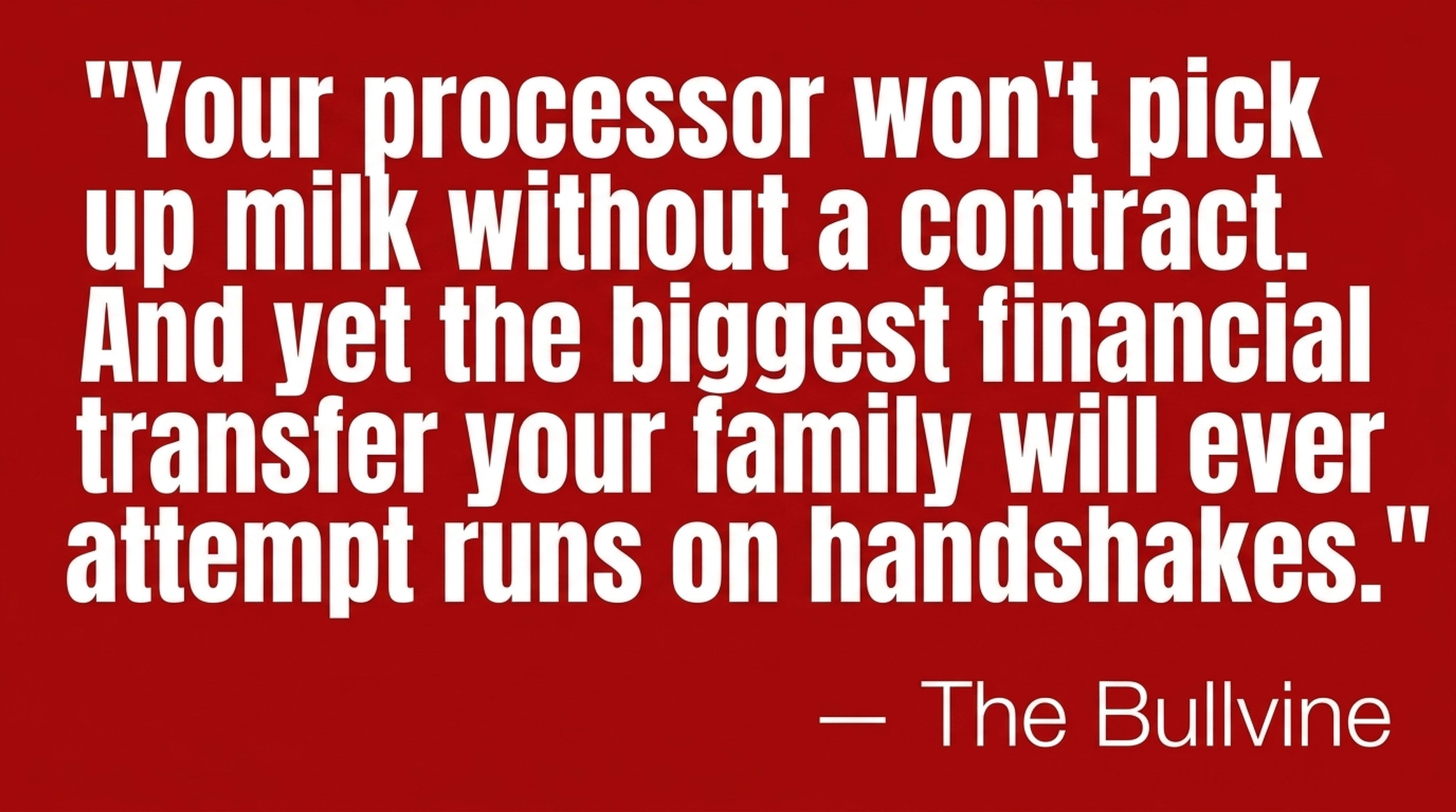 Ask yourself this week: if a judge looked only at your paperwork tomorrow — no stories, no memories, no handshake promises — who would they say owns your dairy? How much would they say it’s worth? And who would they say has the right to run it? If that answer doesn’t match what you thought, now’s the time to fix it. For the deeper milk‑cheque math on how delayed succession quietly bleeds dollars per cwt off your operation, we unpacked that in “The $2.30/cwt Succession Trap.” That’s where the spreadsheets live. This piece is your nudge to pick up the phone before your own handshake becomes Exhibit A.