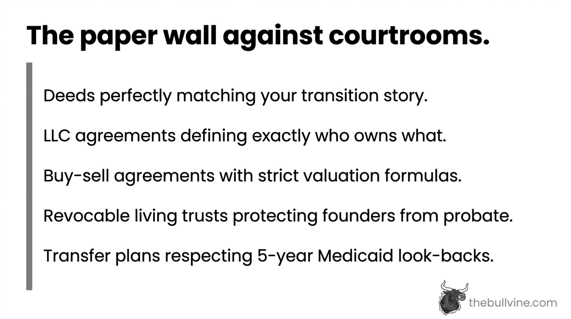 Lawyers love making this sound like wizardry. It isn’t. The farm plans that actually hold up — in court and on the balance sheet — share the same seven pieces. Miss even one, and there’s a gap a judge or a Medicaid caseworker can drive a truck through.
