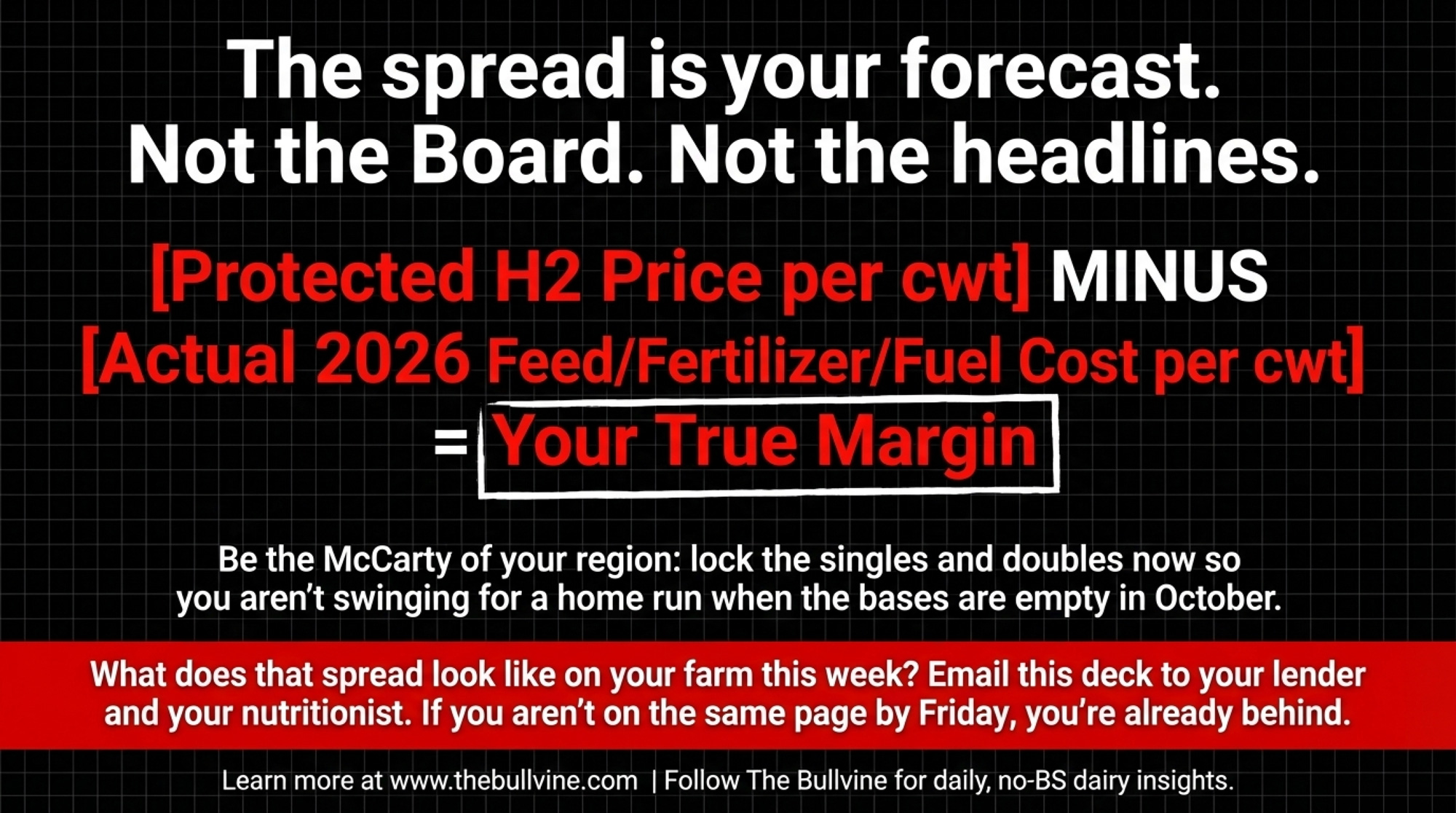 [Pro‑Tip] Don’t wait for your DRP agent to call. Pull your own H2 cwt number this week. Multiply by $1.50. Write it down. That’s what you’re wagering by doing nothing.