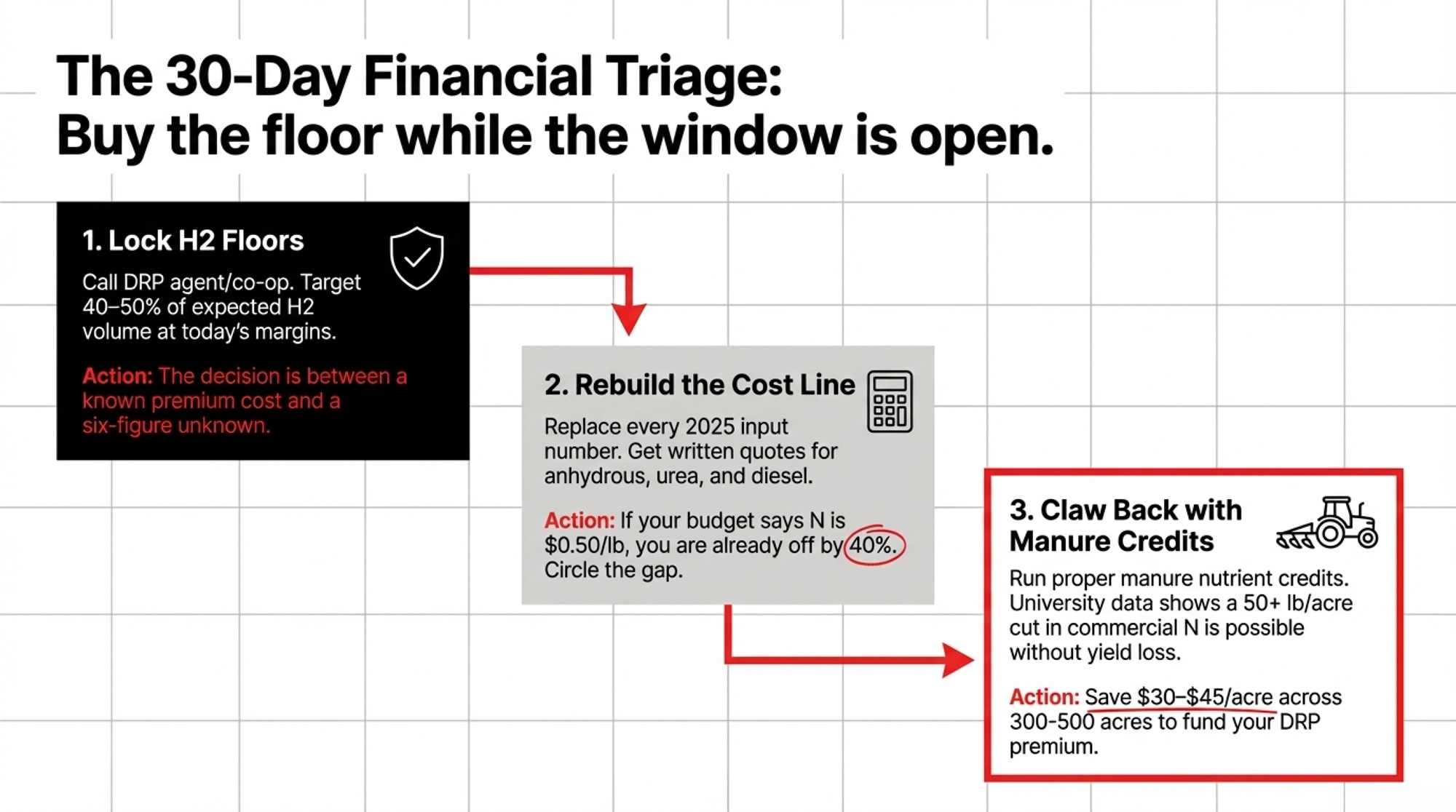 [Pro‑Tip] Run all three before your Q2 lender review. Walking in with DRP confirmations, updated N quotes, and a manure credit plan is the difference between asking for patience and proving a plan.