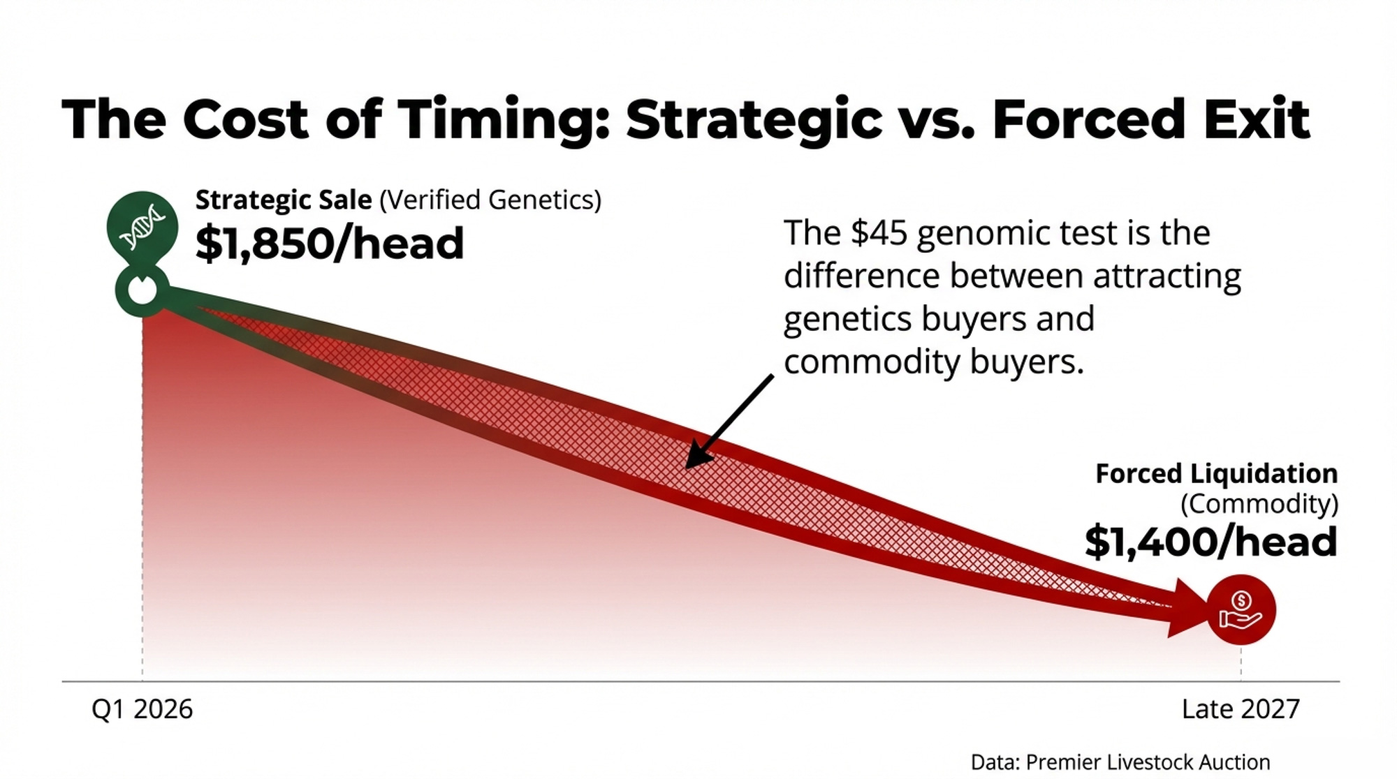 | Forced (Late 2027) | ~$1,400/head | Distressed/scrap | Waiting for a call from the bank |