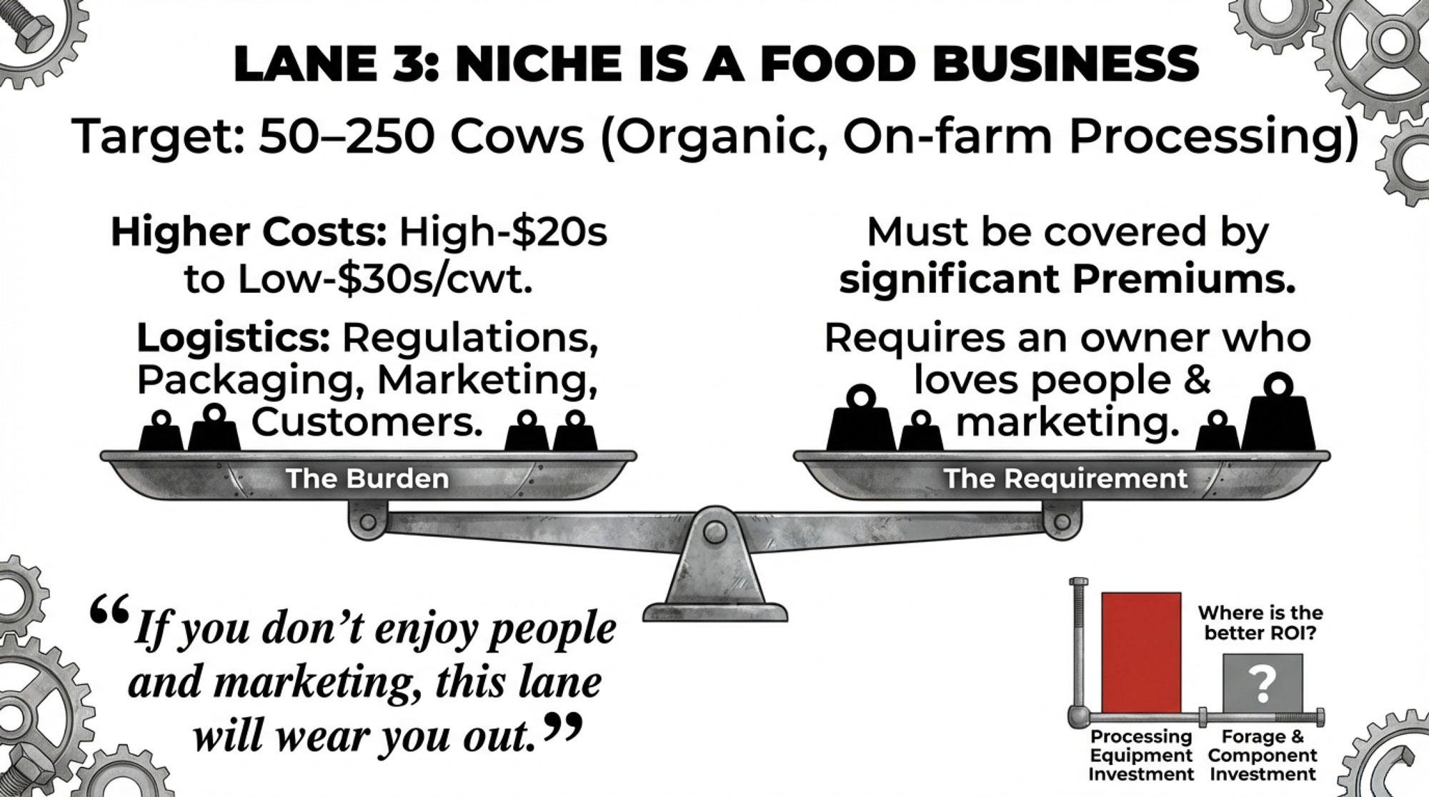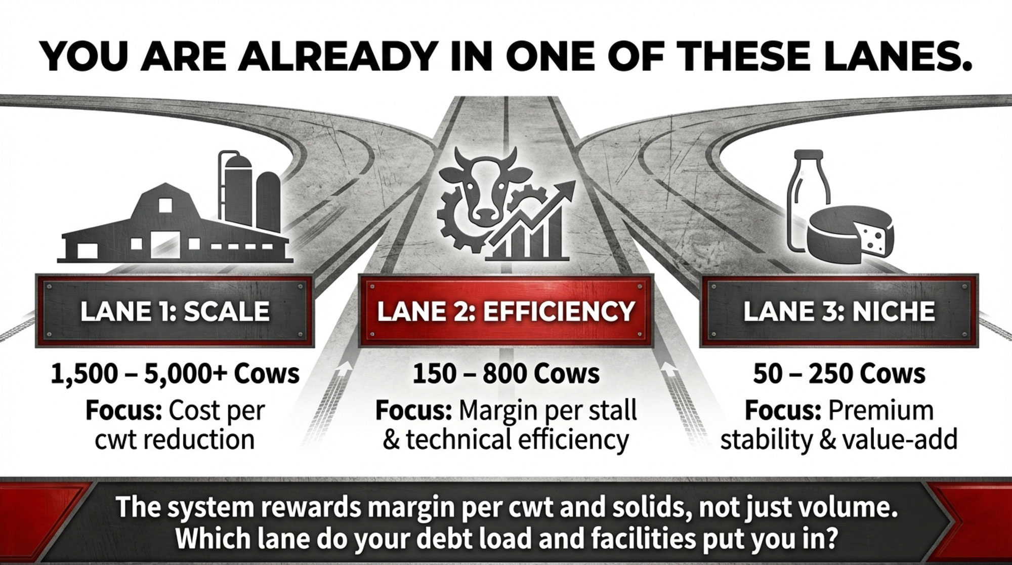 - Lane 1: Scale with discipline – big herds, high throughput, a relentless cost‑per‑cwt focus.