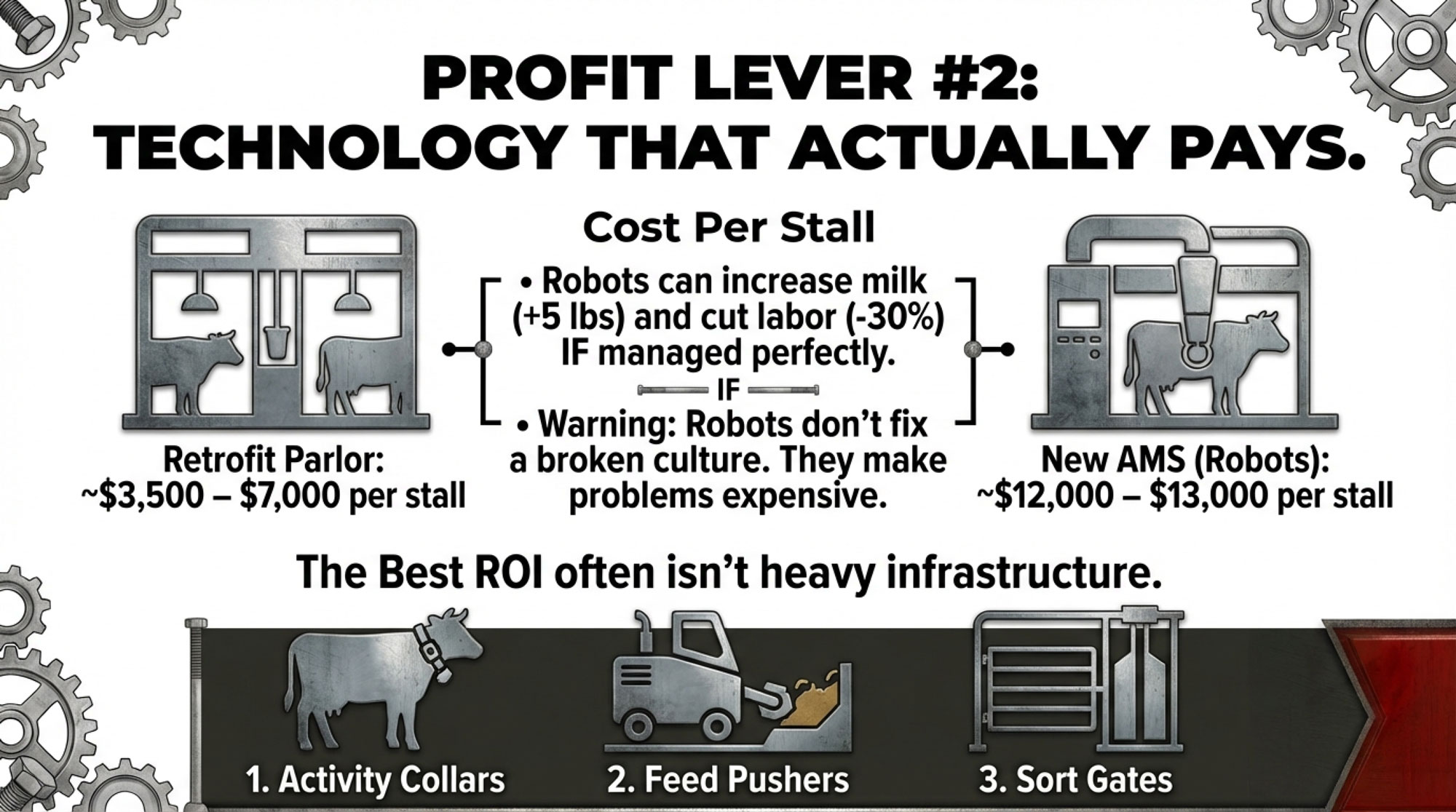For most U.S. herds, the filter that seems to work best is simple: at conservative milk prices and realistic interest rates, can we honestly say this technology will improve dollars of margin per stall and labour per cwt on our farm? If the math only works when everything goes perfectly, it probably belongs on the “someday” list.