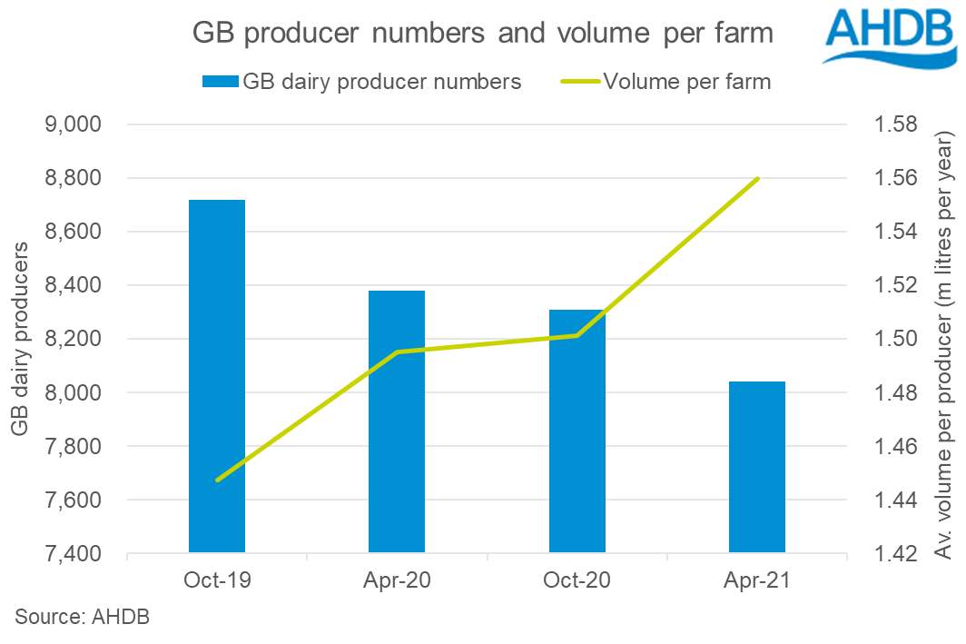 The latest numbers suggests that the average volume per farm in GB has now risen to 1.56 million litres per year.