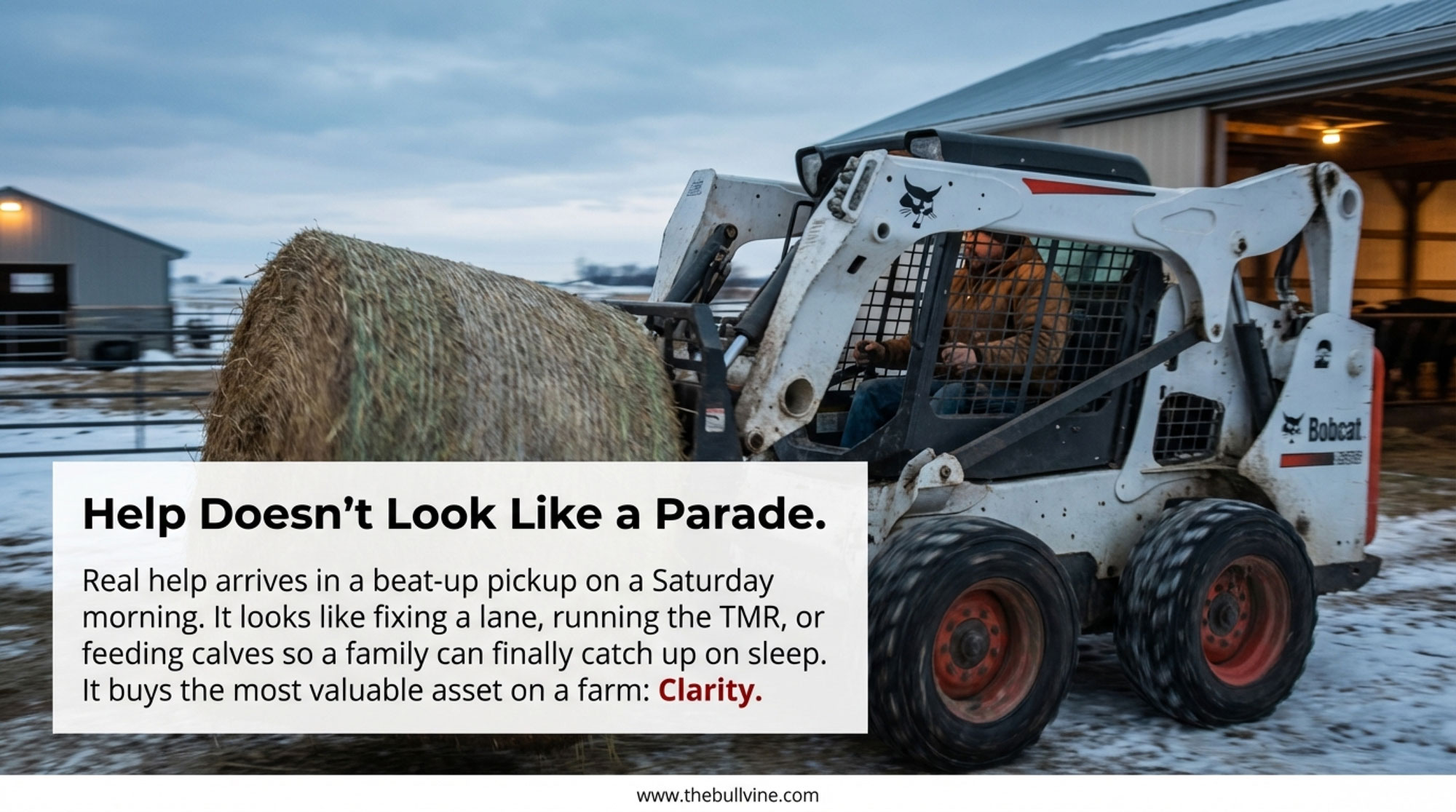 Sometimes it’s a neighbour who pulls in on a Saturday morning with a skid steer and says, “Let’s clean this lane up and move a few gates so this calving pen’s easier to work in.” Sometimes it’s someone offering to run the TMR for a couple of mornings so the family can catch up on sleep, paperwork, and phone calls they’ve been avoiding. On some roads, there’s still that retired dairyman who quietly shows up to feed calves a few times a week, because he knows half an hour in the calf barn can buy someone else a badly needed breather.