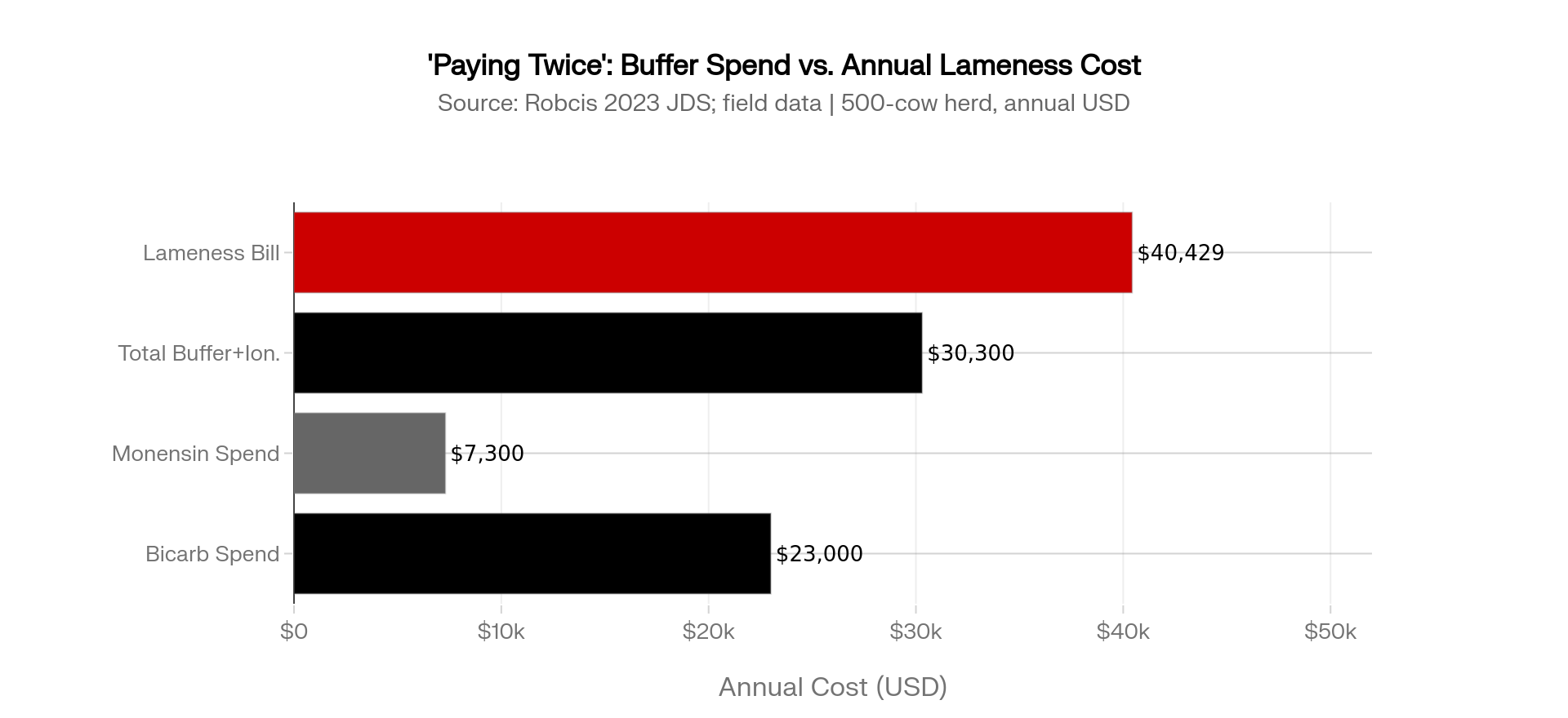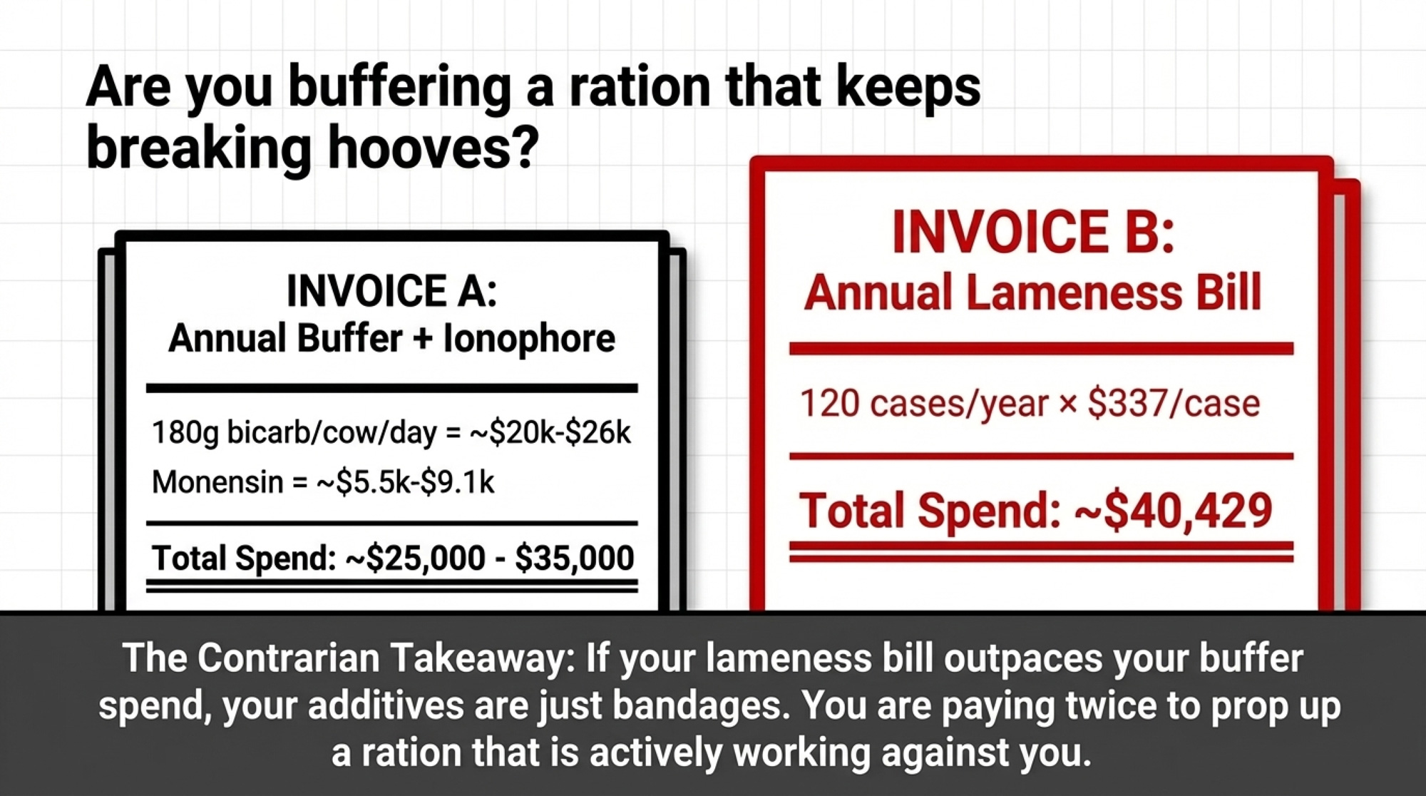 - Put them side by side. If your lameness cost exceeds your buffer spend, your ration may be working against you.