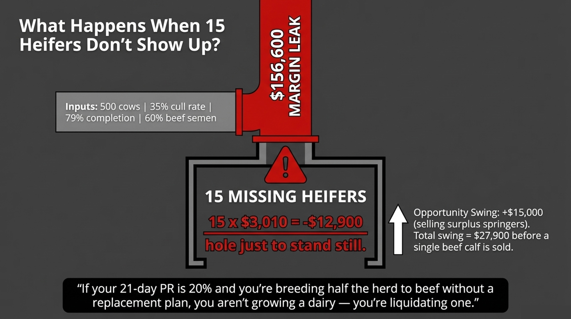 “If your 21-day PR is 20% and you’re breeding half the herd to beef without a replacement plan, you aren’t growing a dairy — you’re liquidating one.”
