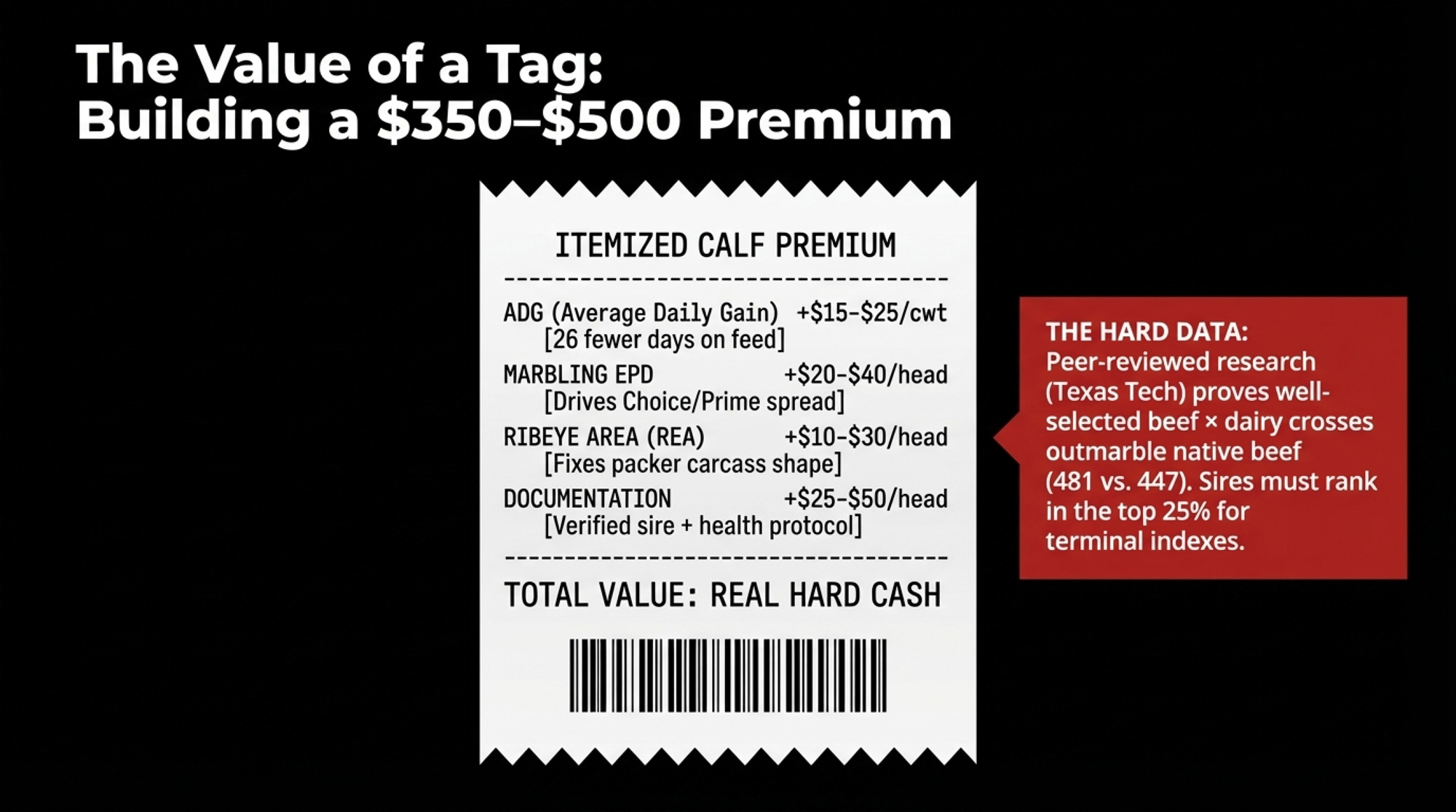 - Call your top calf buyer this month and ask for their preferred sire list. If they can’t give you one, they’re a middleman. Aligning 80% of your beef matings to a real finisher’s specs is the fastest path from $1,150 calves to $1,550 calves.