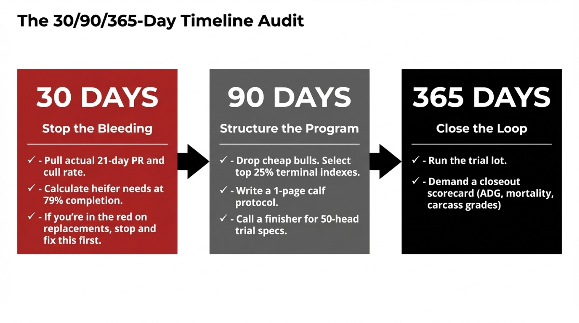 Don’t wait for your next replacement bill to find out you’re in the red. Start your 30-day audit today — pull your real PR, your real cull rate, and your real beef semen percentage. Put them on paper. If the numbers look more like Path A than Path C, that $156,600 gap isn’t a hypothetical. It’s the margin you’re leaving on someone else’s table.