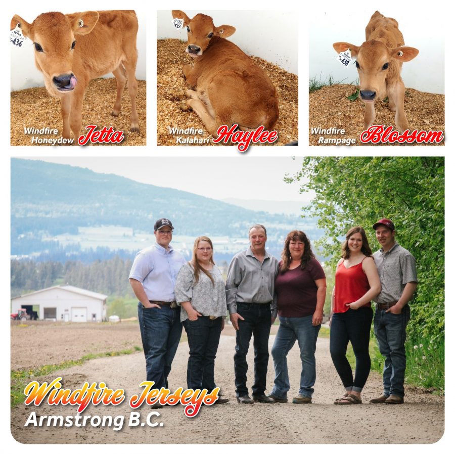 Bottom photo: The Windfire Jerseys family (l-r): Will & Corlee, Grenville & Christine, Kendyl & Taylor.