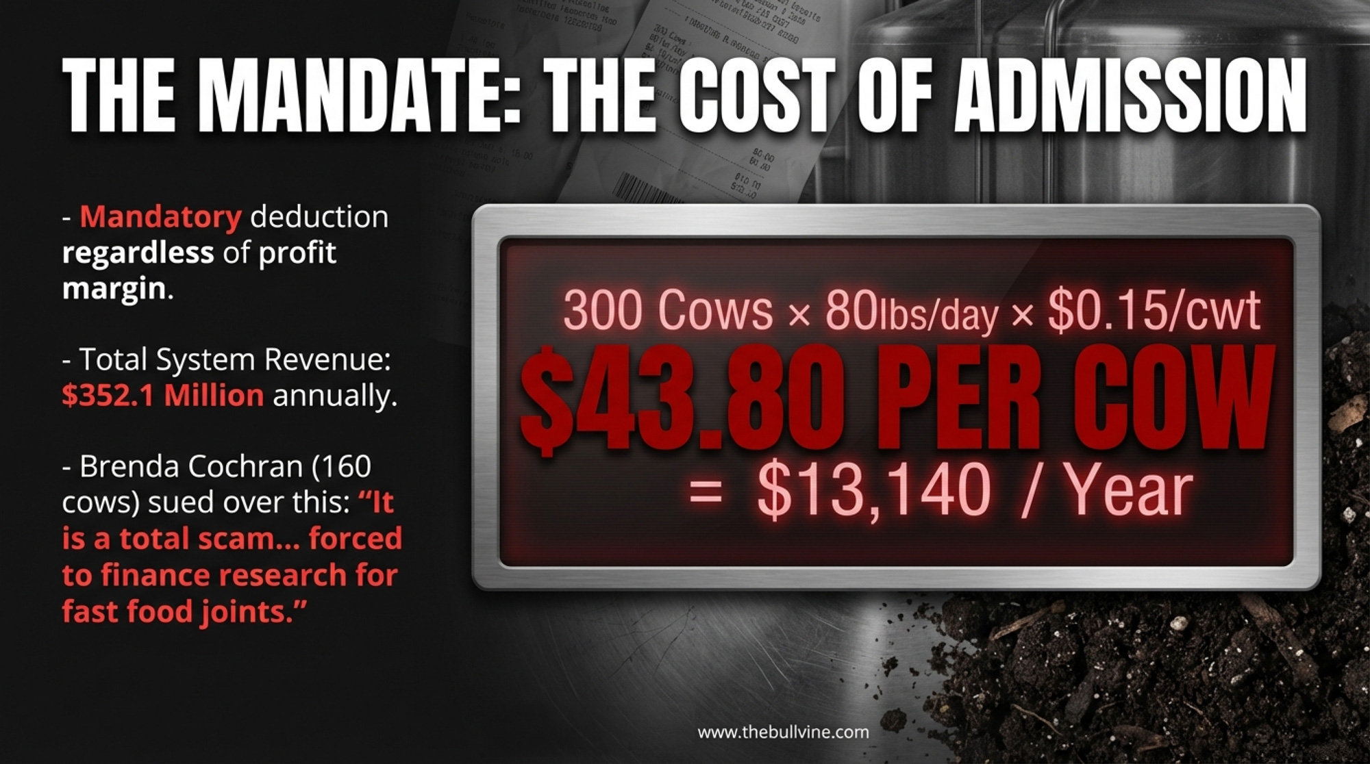 Cochran has been paying into this system since before she sued the USDA in 2002. Lloyd’s been poking at it from inside the boardroom. Twenty‑four years later, the system’s still collecting, and the questions are bigger, not smaller. Your checkoff costs you $43.80/cow this year, whether you ask those questions or not. So ask them — and pay attention to who’s willing to answer.