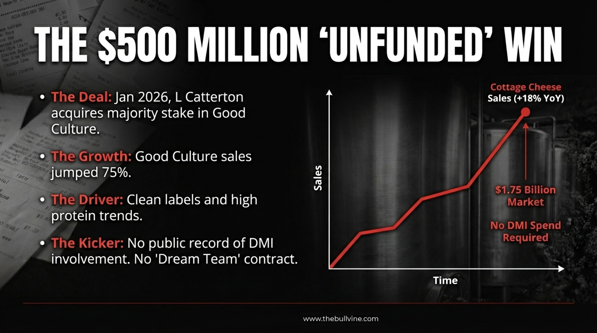There’s no public record of DMI involvement in the cottage cheese revival. No “Dream Team” contract. No branded editorial deal. The cottage cheese boom looks like a genuine consumer pull — the “protein hack” trend on TikTok collided with clean-label preferences and the category exploded without anyone from DMI touching it.