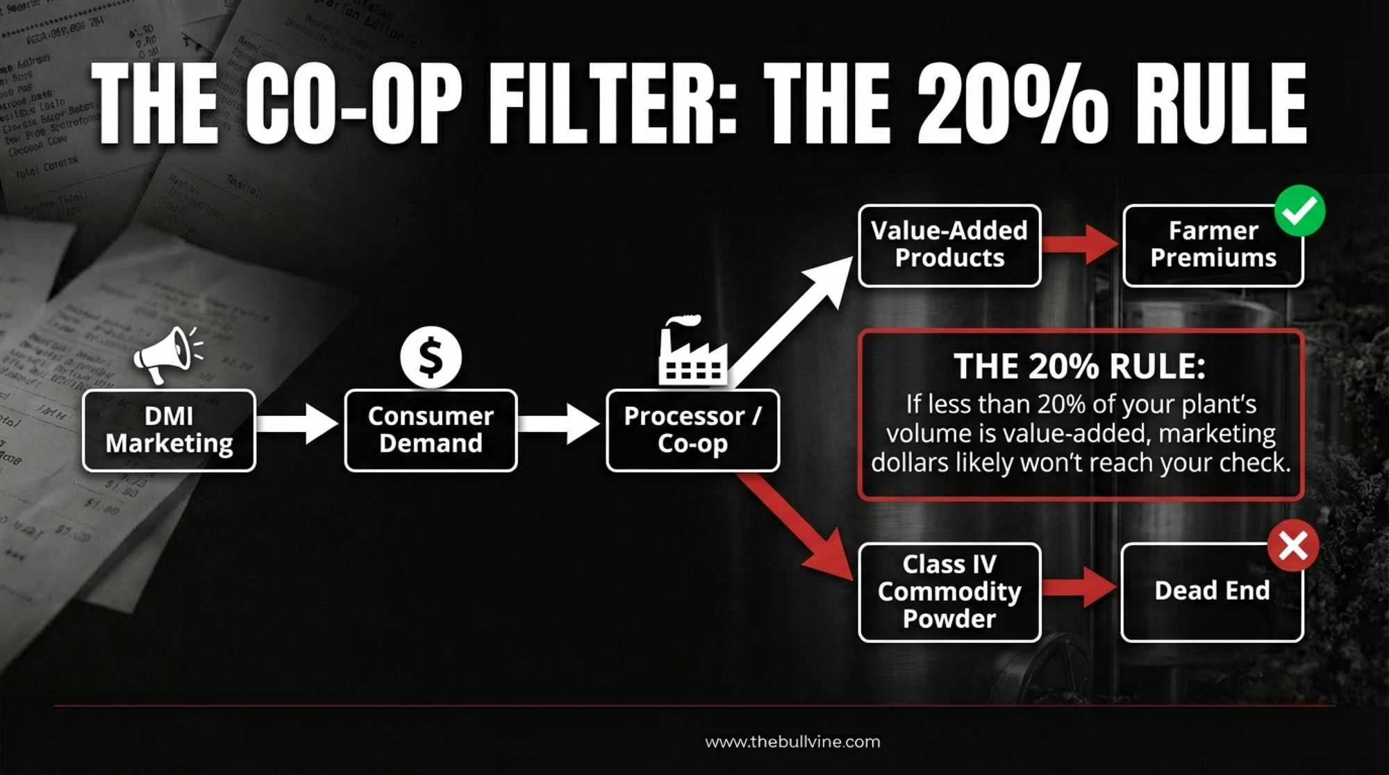 Ask your co-op three specific questions. (1) What percentage of our plant volume goes to specialty or value-added products versus commodity products? (2) Has checkoff-funded demand creation measurably increased the component premiums we receive at the farm level? (3) What specific DMI or state checkoff programs directly benefit our marketing region? If your co-op can’t answer these, that tells you something, too.