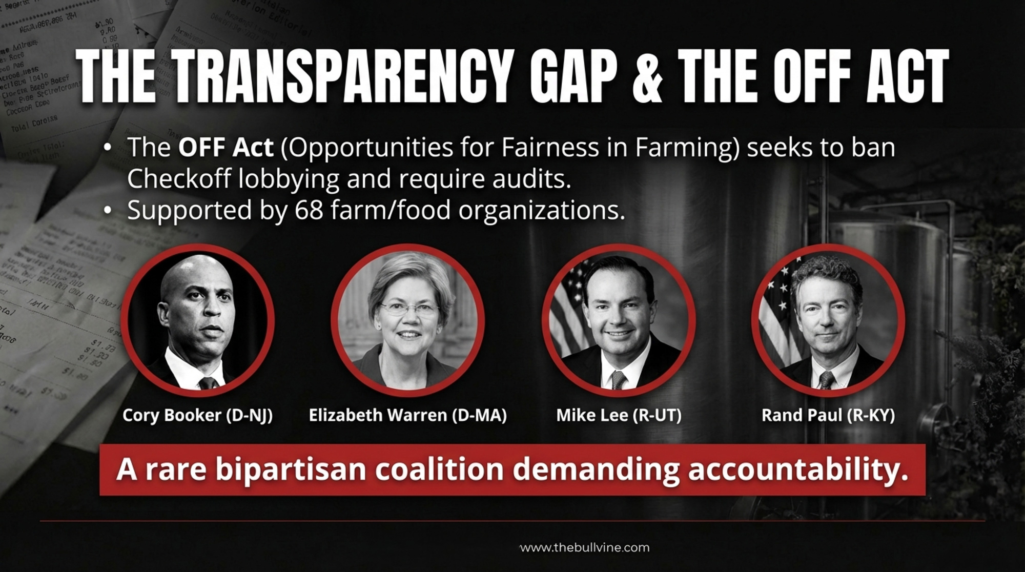 Push for transparency from the system. Sixty-eight farm and food organizations now back the OFF Act (Opportunities for Fairness in Farming), a bipartisan bill introduced in May 2025 by Senators Mike Lee (R-UT) and Cory Booker (D-NJ), with cosponsors Rand Paul (R-KY) and Elizabeth Warren (D-MA). The legislation would ban checkoff organizations from lobbying or contracting with lobbying groups, require program audits, and create an ombudsman for producer complaints. It hasn’t passed, and the dairy lobby has fought previous versions hard. But the bipartisan sponsor list — from Lee to Warren — tells you something about where the political pressure is building. If the OFF Act matters to you, contact your representatives this month while the Farm Bill is still in play; your voice carries the most weight then.