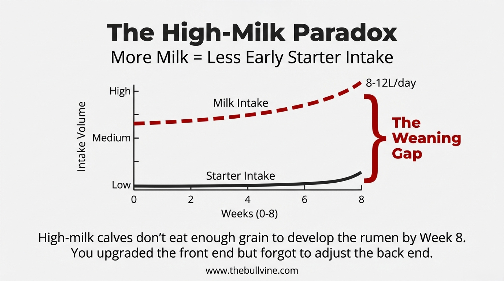 If you’re pulling milk at week 8, you’re asking the rumen to do a job it can’t yet handle. One Wisconsin operation already proved what happens when you stop asking.