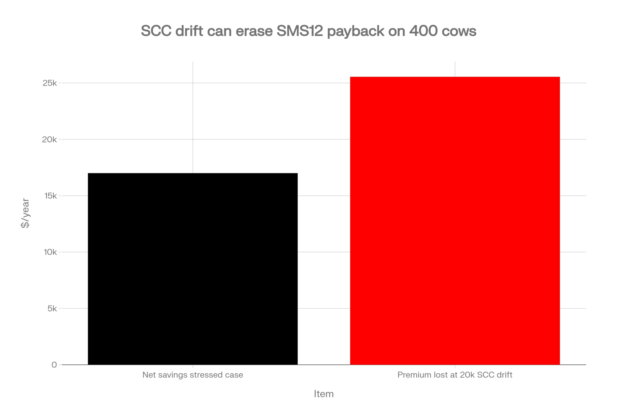 The payback math assumes a commissioning SCC event is a one-time quality-premium hit. It isn’t — not in a Bullvine reader’s barn.