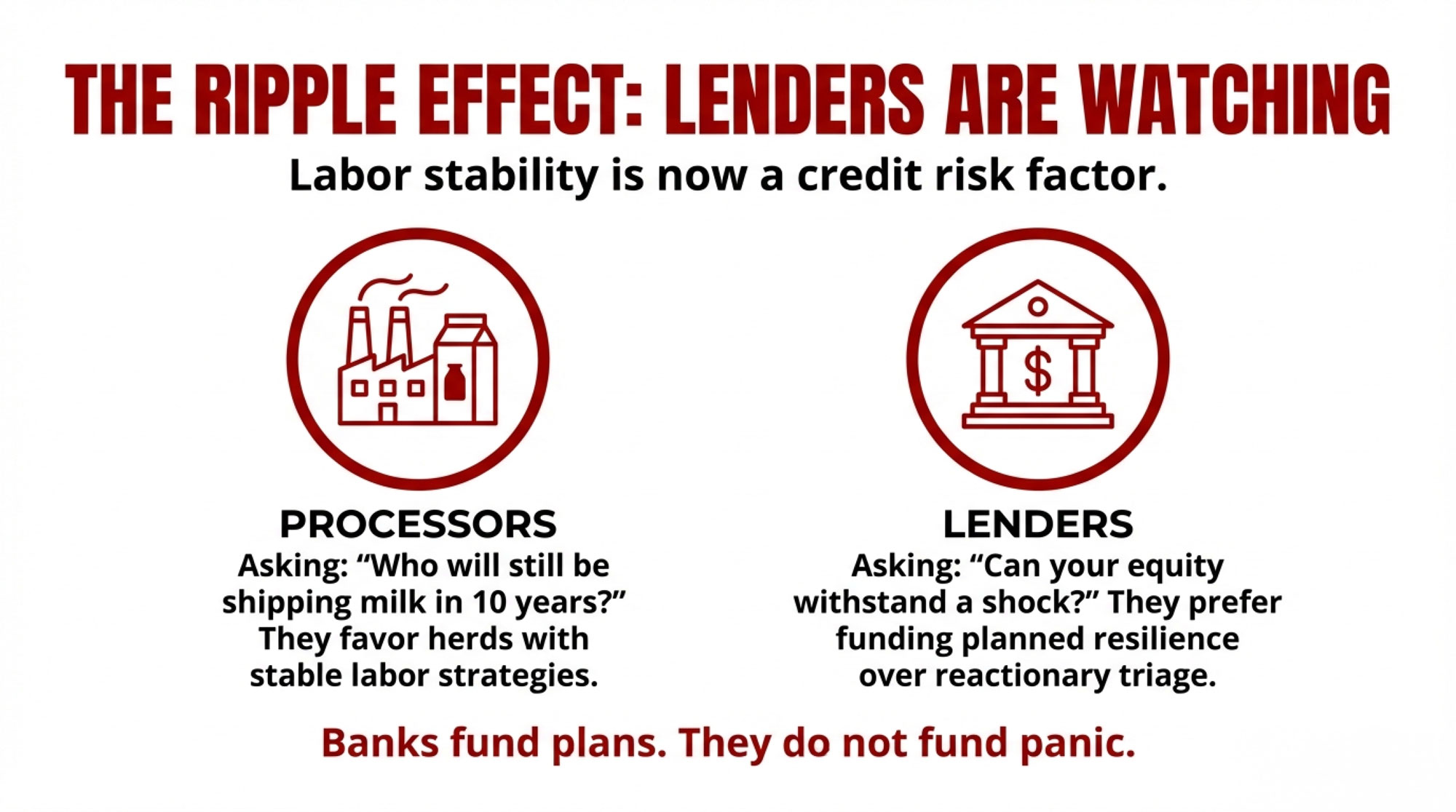 Lenders who focus on dairy are following the same School for Workers updates, Texas A&M modelling, and DOL wage tables that you are. Many have their own quiet models about labor risk.