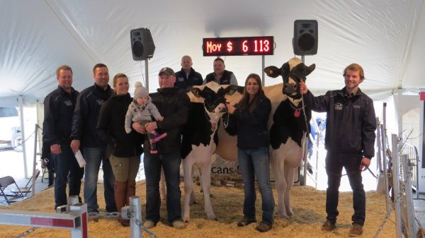 Pineriver Doorman Hayley a fancy Summer Yearling for 2017 topped the Holstein Quebec National Sale at $21,700. Backed by EX-90-4YR-CAN Dempsy dam is one to watch for this spring. The next highest seller was Jacobs Sanchez Jolianne EX-92 2E at $20,500 and was purchased by Pierre Boulet and ferme Fortale. This 4th Generation EX goes back to the All-Canadian and All-American Sr. Three year old in 2008, Valleyville Lheros Jenn EX-94 12★. The average of the 88 lots sold: $6113, the average of lactating cows: $ 7340. She sold with a contract for 10 sexed Doorman embryos. Consignments where selected by Dominic Fortier and Pierre Boulet.