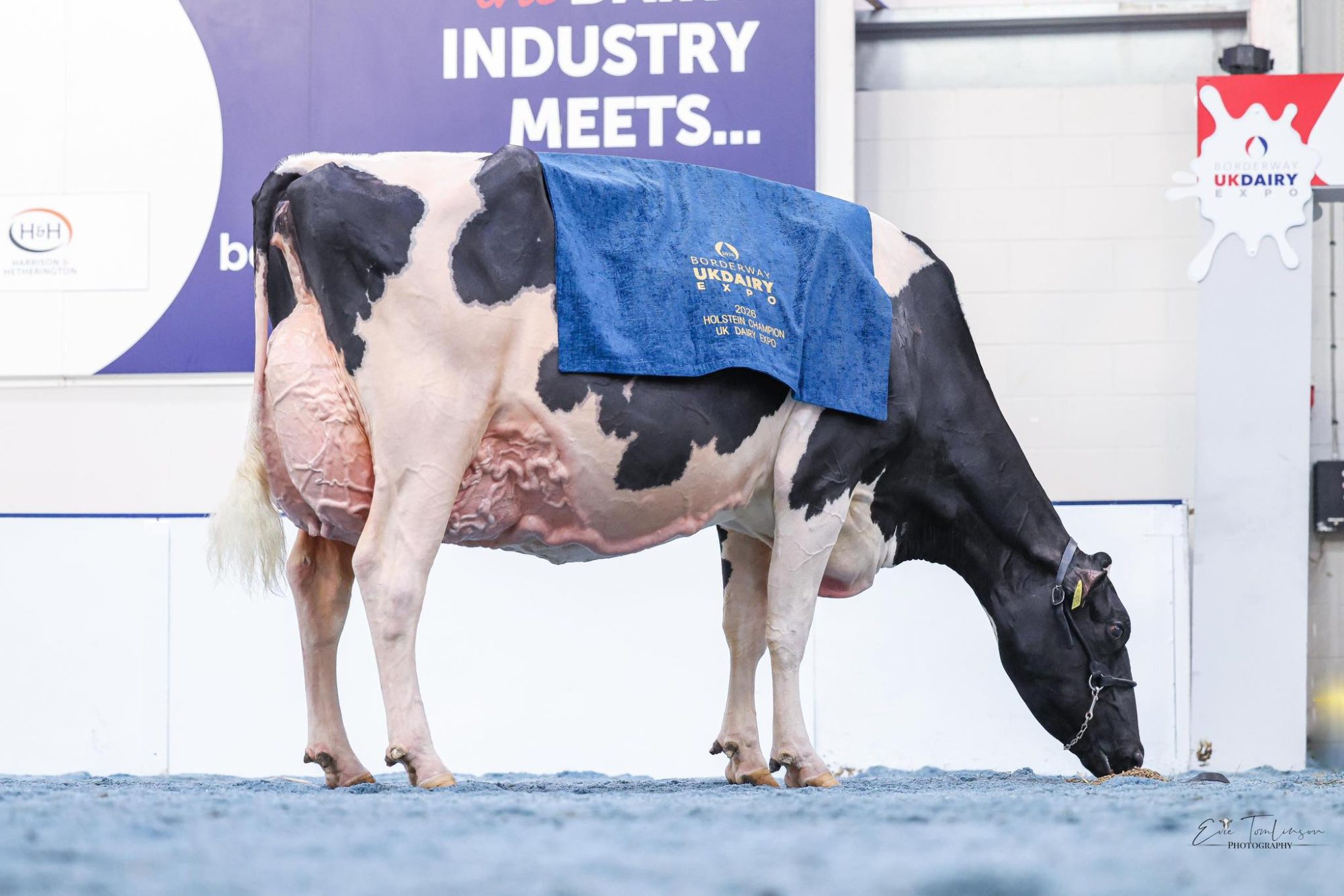 The EX-97 fifth calver owned by James and Louise Wilson of Evening Holsteins, Carlisle, was named Holstein Breed Champion at the 2026 Borderway UK Dairy Expo on Saturday, tapped by Canadian judge Steve Fraser of Fraeland Farms. The championship, sponsored by Holstein UK, adds yet another line to a résumé that is rapidly running out of room.