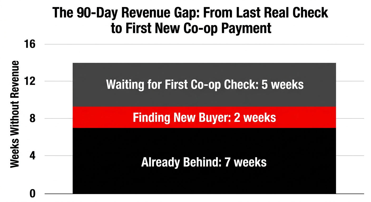 Most of these farms were already six to eight weeks behind on payments when the plant went dark. Finding a new buyer takes weeks, and the first check from a cooperative takes a month or more. The real revenue gap isn’t six to eight weeks. It’s closer to 10 to 12 from the last real payment to the first new check.