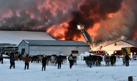 Initial reports indicated everyone was able to get out of the affected buildings safely. 90 cows are dead, however due to the efforts of staff and firefighters more than 850 were saved from the fire that caused $3-million in damages. Meanwhile, workers drove cows that had been evacuated from barns towards waiting cattle trucks for transportation to safety.