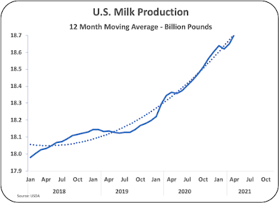 The 2021 increases in NDM prices are very positive for producer milk pricing. The lowest 2020 NDM price was $.85 per pound and the June 2021 price is $1.27 per pound, a 50 percent increase.