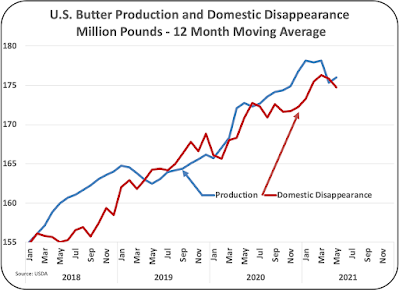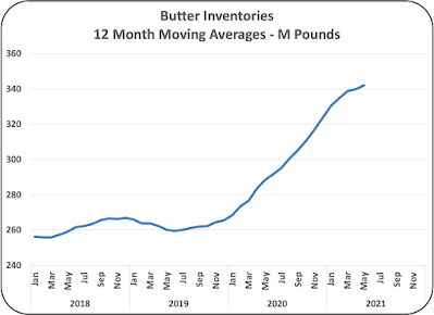 - Butter production and inventories are very important as they are key in determining the value of butterfat in milk.