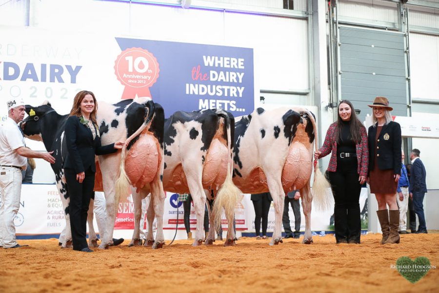 Riverdane Doorman Elke VG-88-UK 2yr. won the Grand Championship B&W at the UK Dairy Expo. This stunning Doorman daughter is straight out of Carf Emeraude EX-91-NL and full sister to JK Eder DG Esmeralda EX-92-NL EX-94-MS. Their dam Carf Emeraude EX-91-NL is the living cow with the most excellent daughters in Europe. Res Champion was Davlea Sidekick Wattle