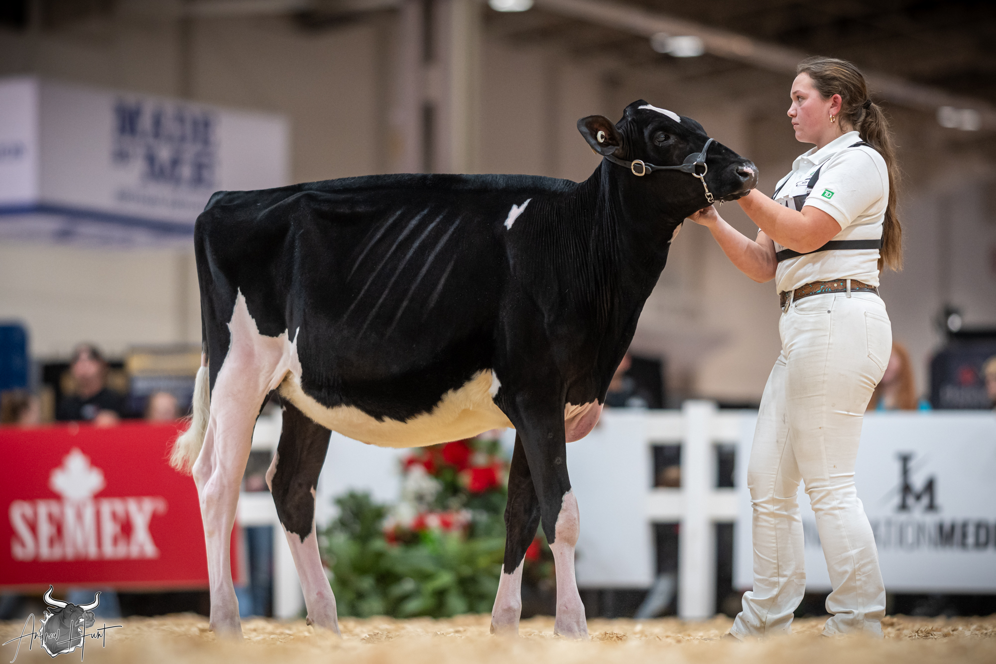 RESERVE GRAND CHAMPION DELCREEK PAST CURFEW (MASTER), 1ST HOLSTEIN WINTER CALF, HANNAH MCQUAT, ST-ANDRÉ D’ARGENTEUIL, QC