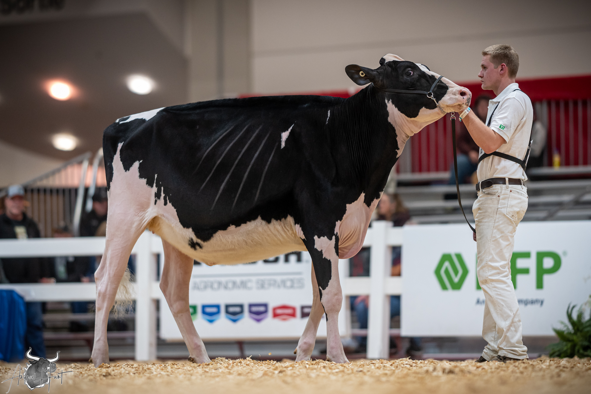 GRAND CHAMPION KARNVIEW LEMAGIC REVOLVE (LEMAGIC), 1ST HOLSTEIN SPRING YEARLING, MITCHELL ANDERSON, RIDGETOWN, ON