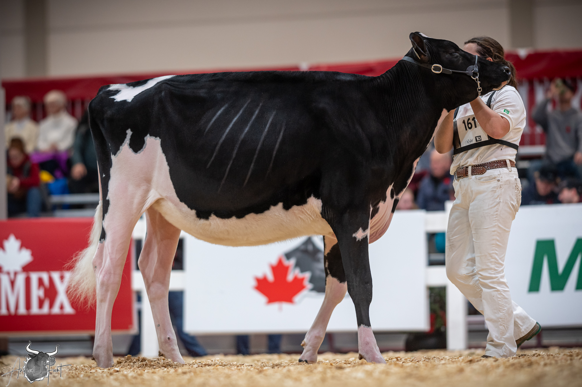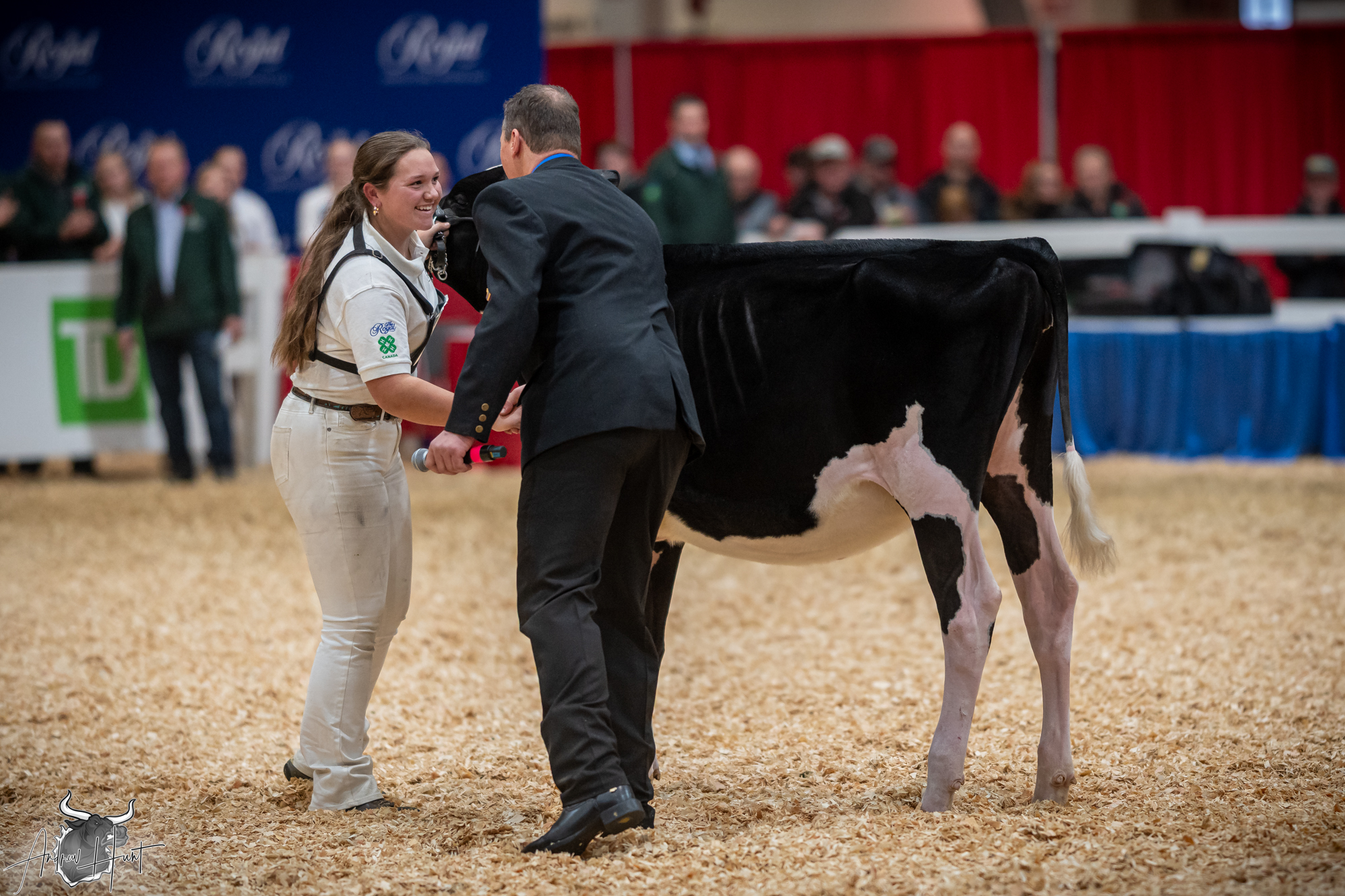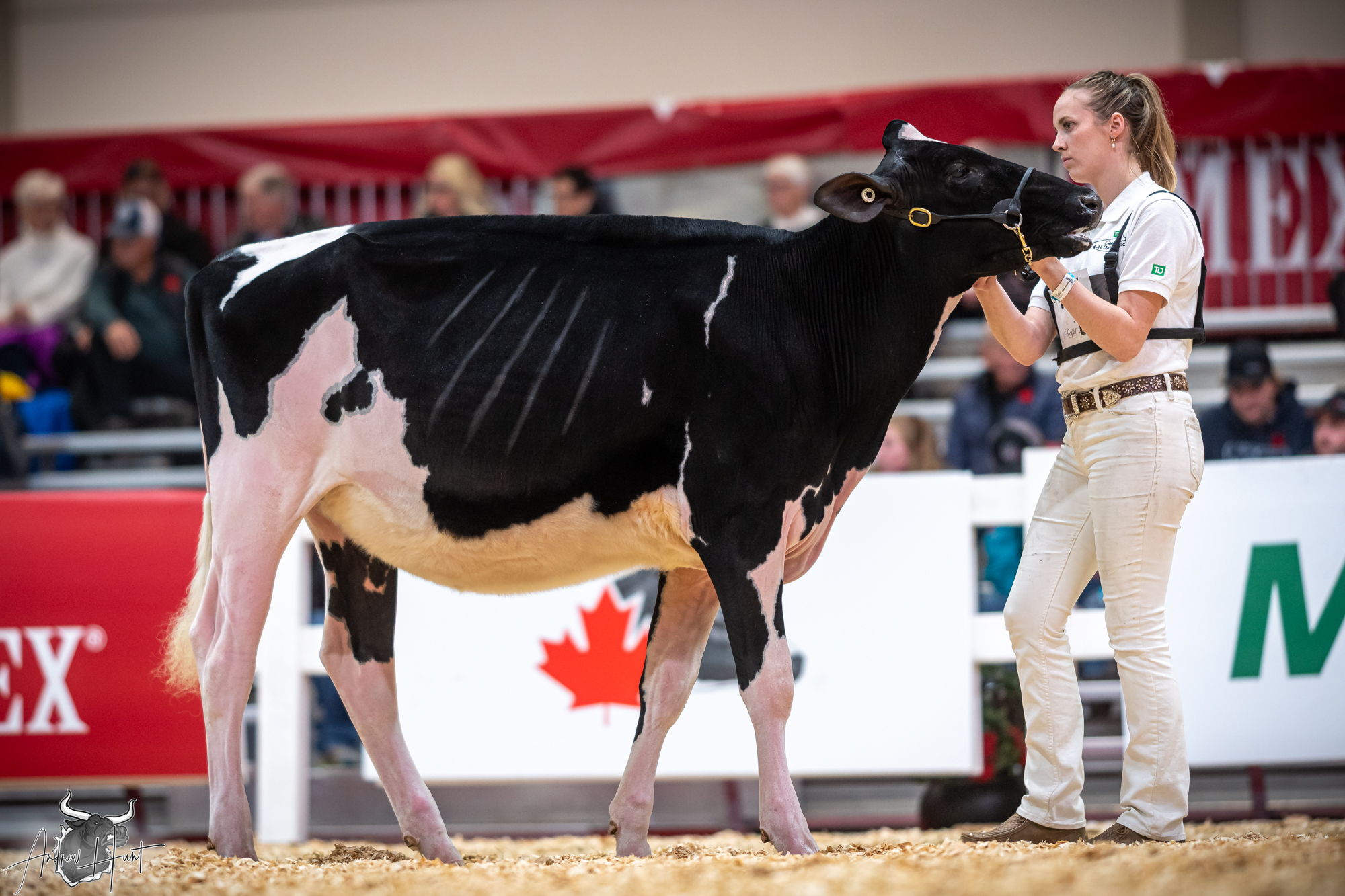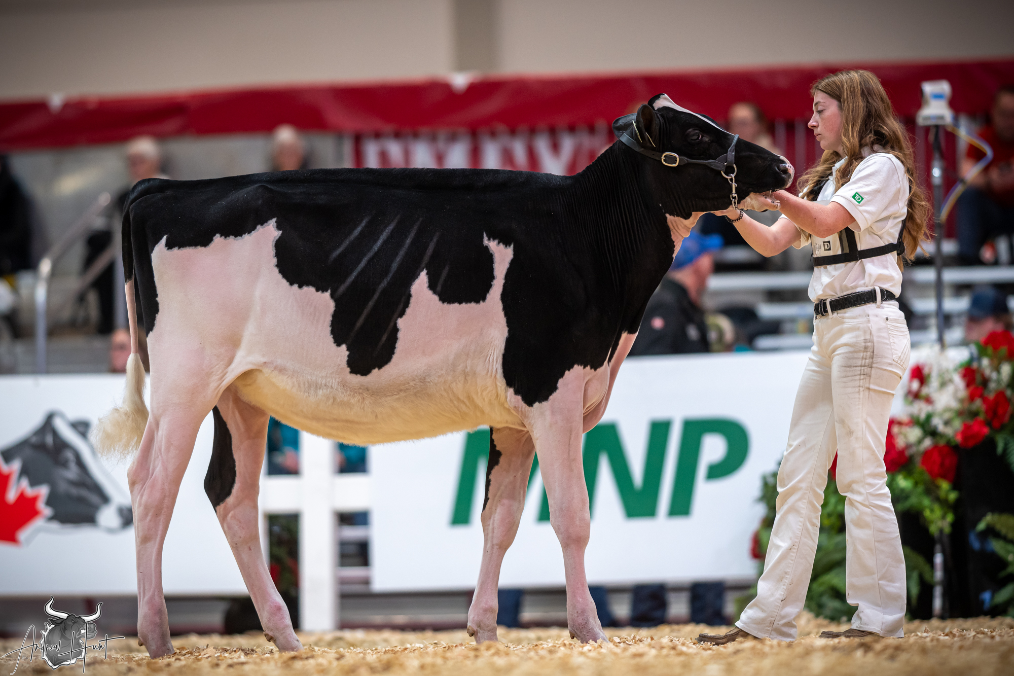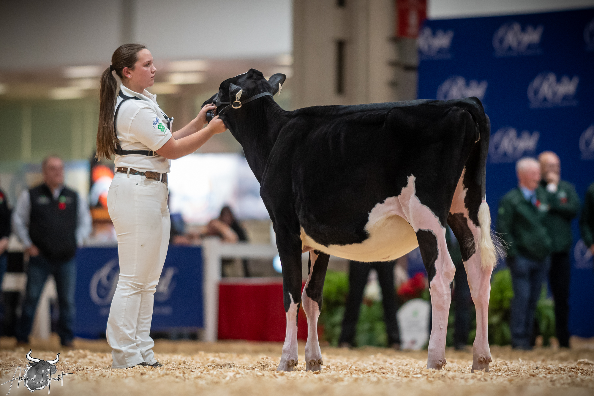 RESERVE GRAND CHAMPION DELCREEK PAST CURFEW (MASTER), 1ST HOLSTEIN WINTER CALF, HANNAH MCQUAT, ST-ANDRÉ D’ARGENTEUIL, QC