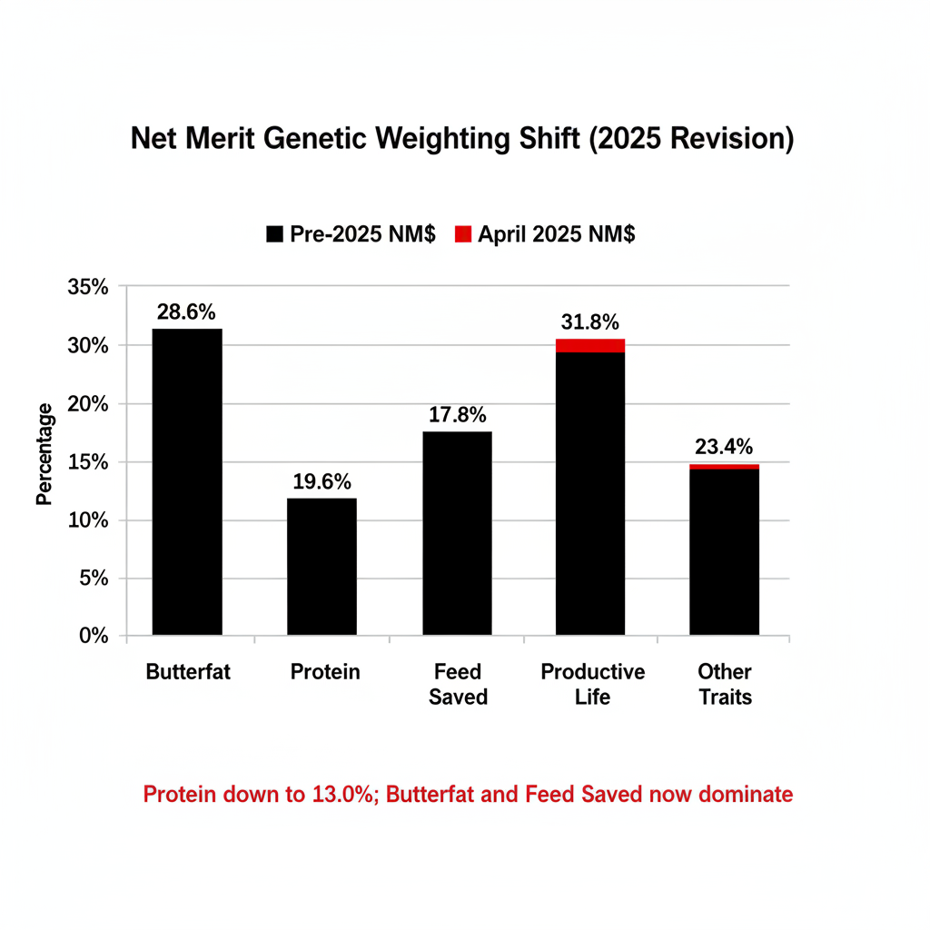 - Audit your genetic alignment. Are you selecting for CM$ or NM$ to match your actual processor contract? The April 2025 NM$ revision puts butterfat at 31.8% — if you’re shipping into a fluid market, that may not be your index.