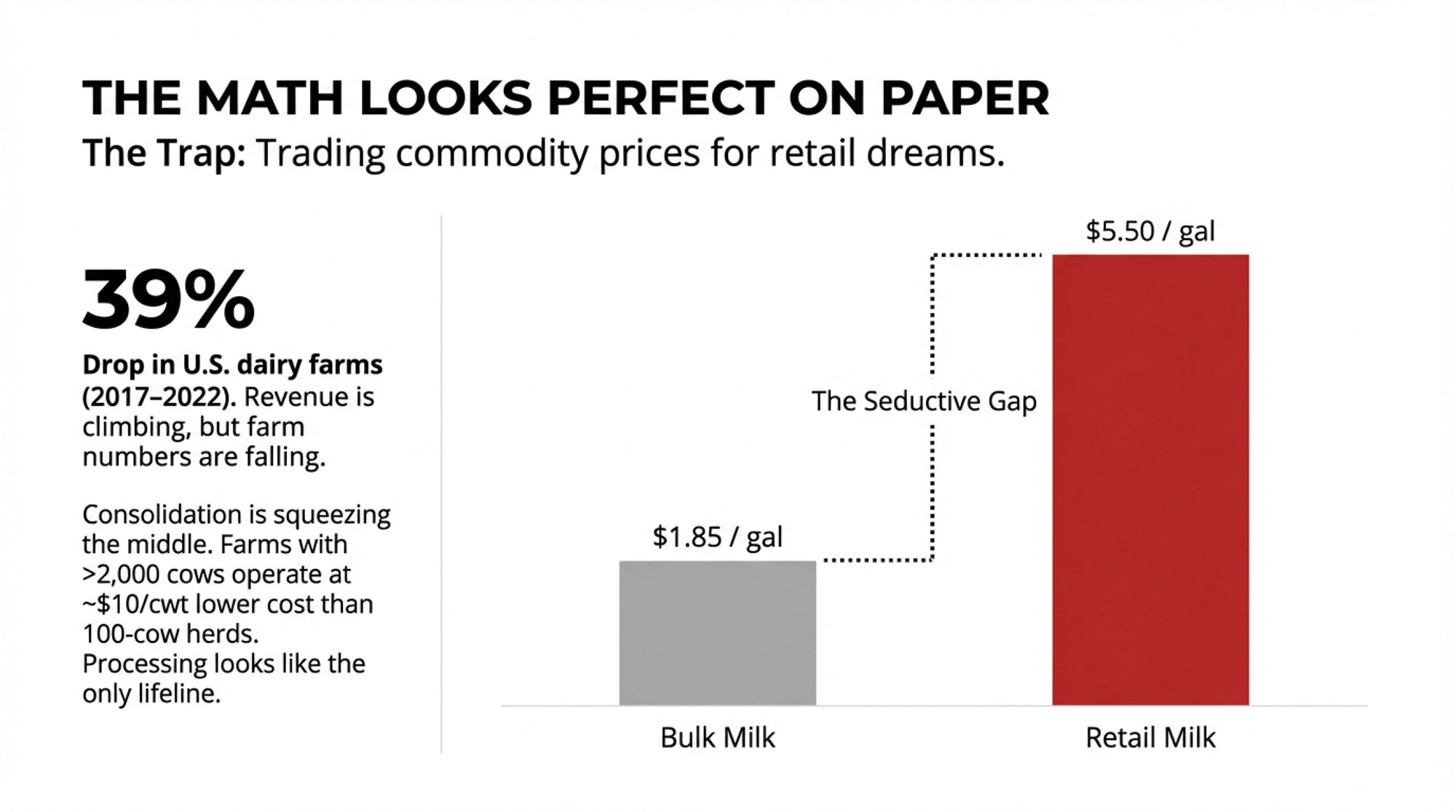 You’re not really selling $5.50 milk. You’re selling about $1.50 of margin and a second full‑time job.